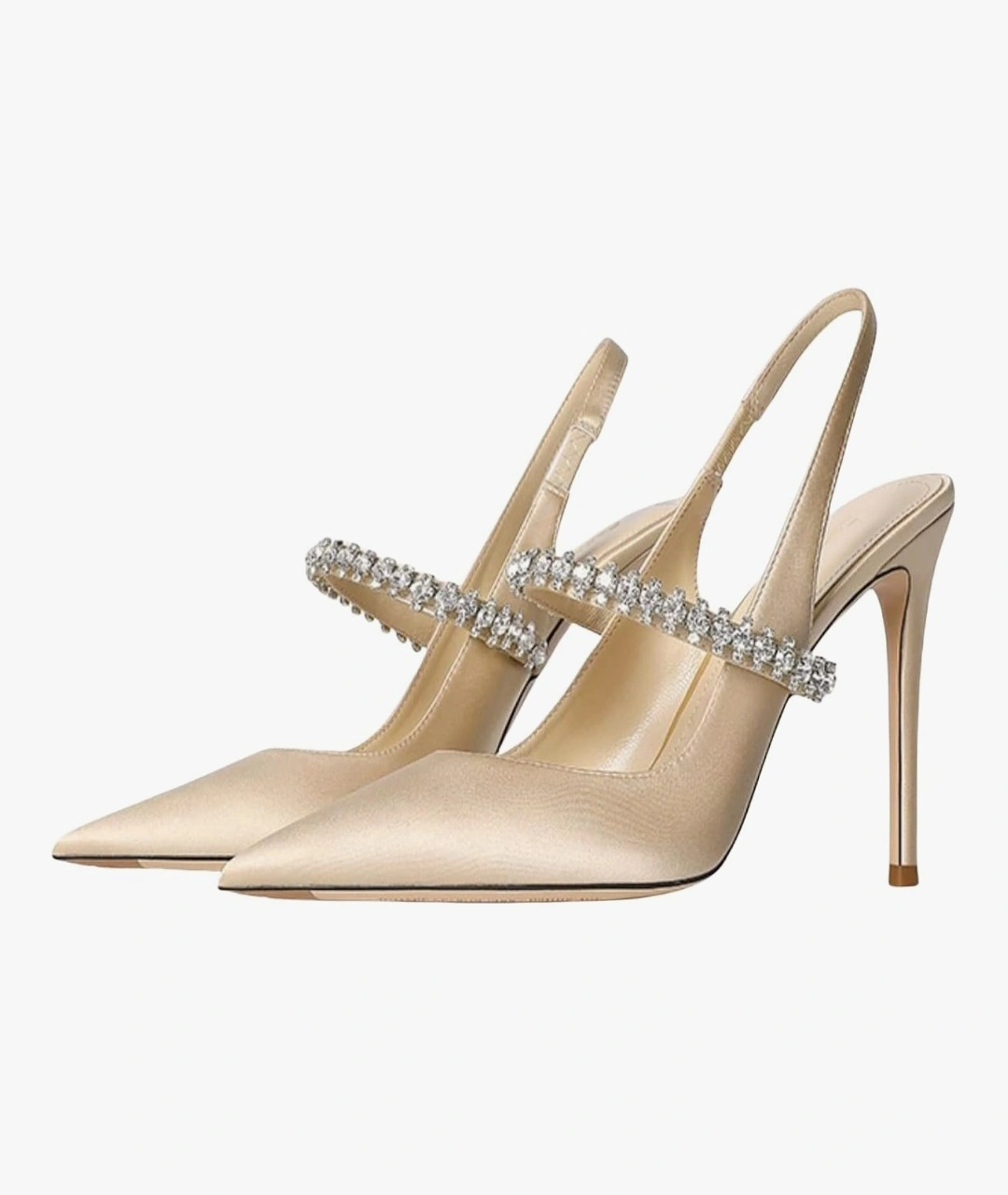 Champagne High Heel Slingbacks with Rhinestone Strap