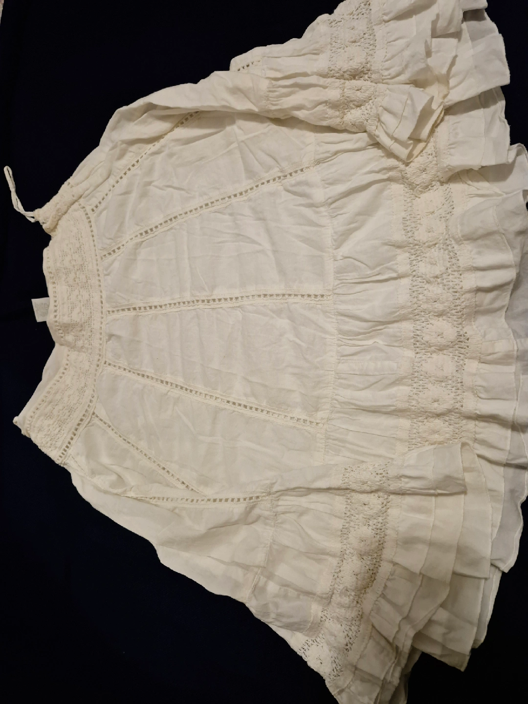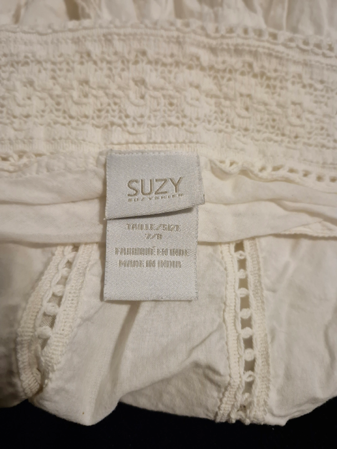Selling a cute white skirt from Suzy Shier! It's a size 7/8 and made in India. The skirt has a lovely lace trim and a tiered design. Perfect for a summer day!