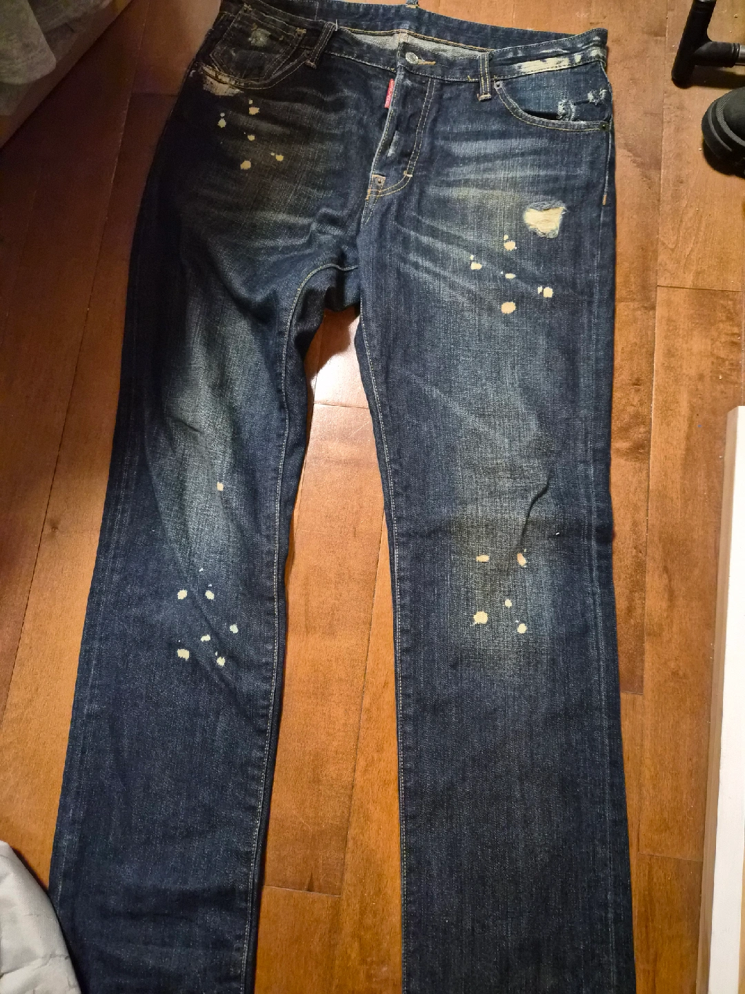 Dsquared2 jeans in size 36inch waist. These jeans have a unique design with some distressed details and paint splatter effects. Made in Italy.