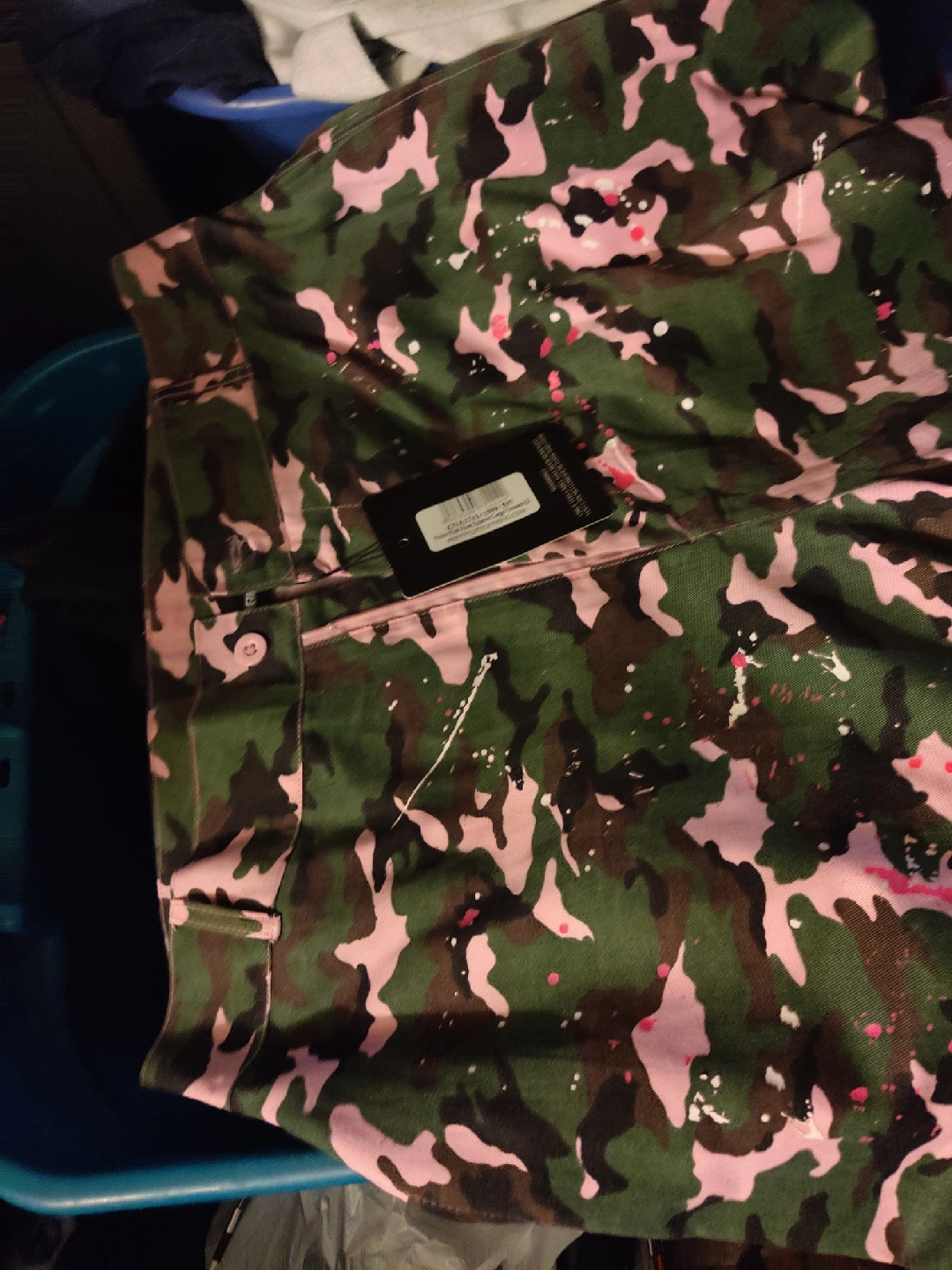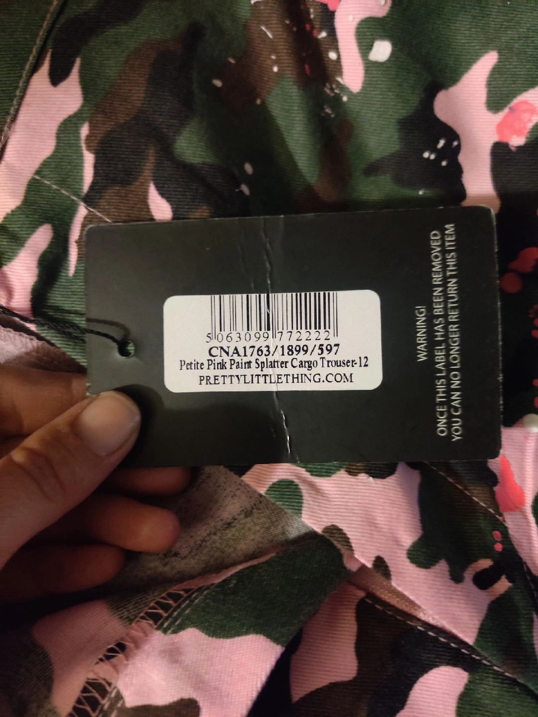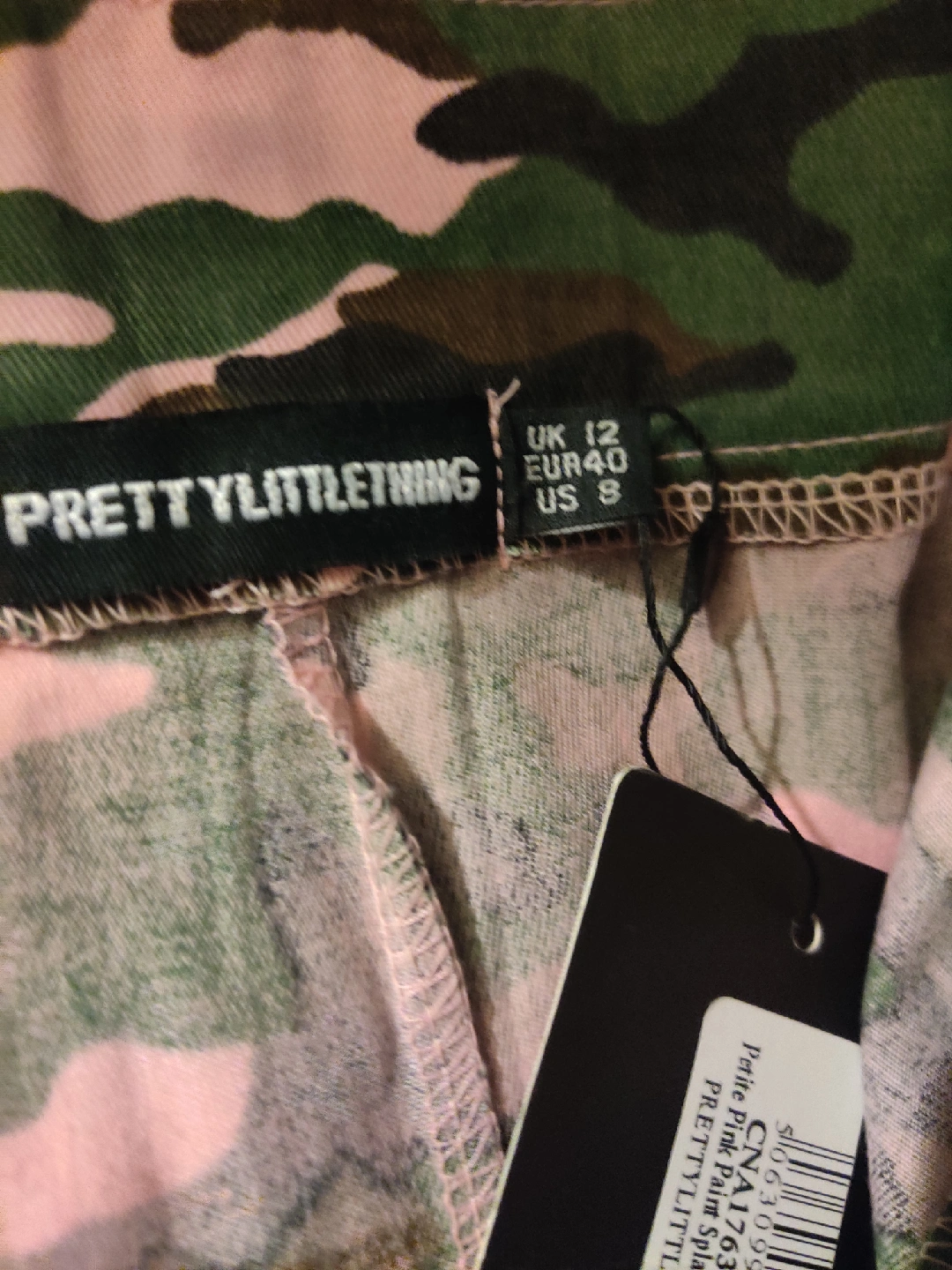 Selling a pair of PrettyLittleThing Petite Pink Paint Splatter Cargo Trousers in US size 8. These pants feature a unique pink camouflage pattern with a paint splatter design. They are perfect for adding a stylish and edgy touch to your wardrobe!