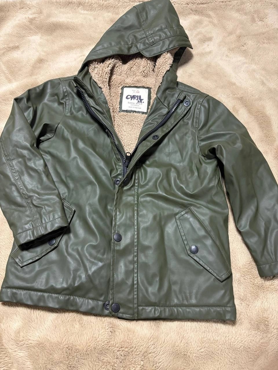 93Here's a ZARA stylish green hooded jacket from Cyrillus! It looks to be in great condition and features a cozy lining. Perfect for keeping your little one warm and dry on those cooler days Age : 6