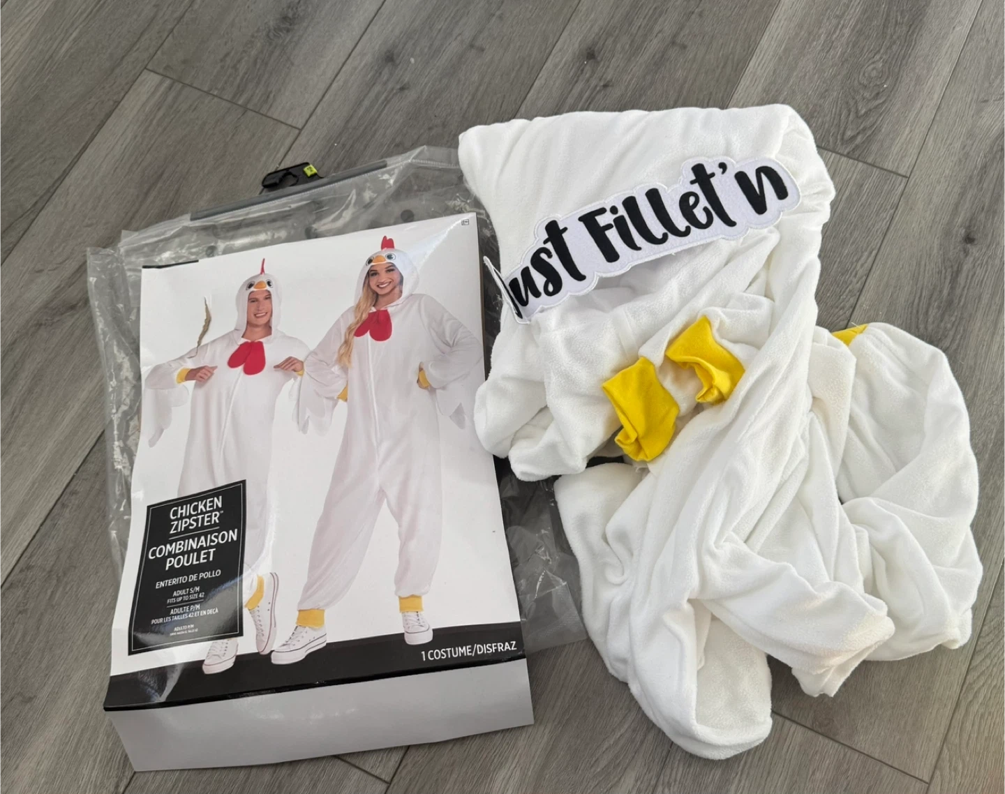 Selling a fun Chicken Zipster costume! It's an adult size and appears to be in good condition. The costume comes in its original packaging. Perfect for Halloween or a themed party!