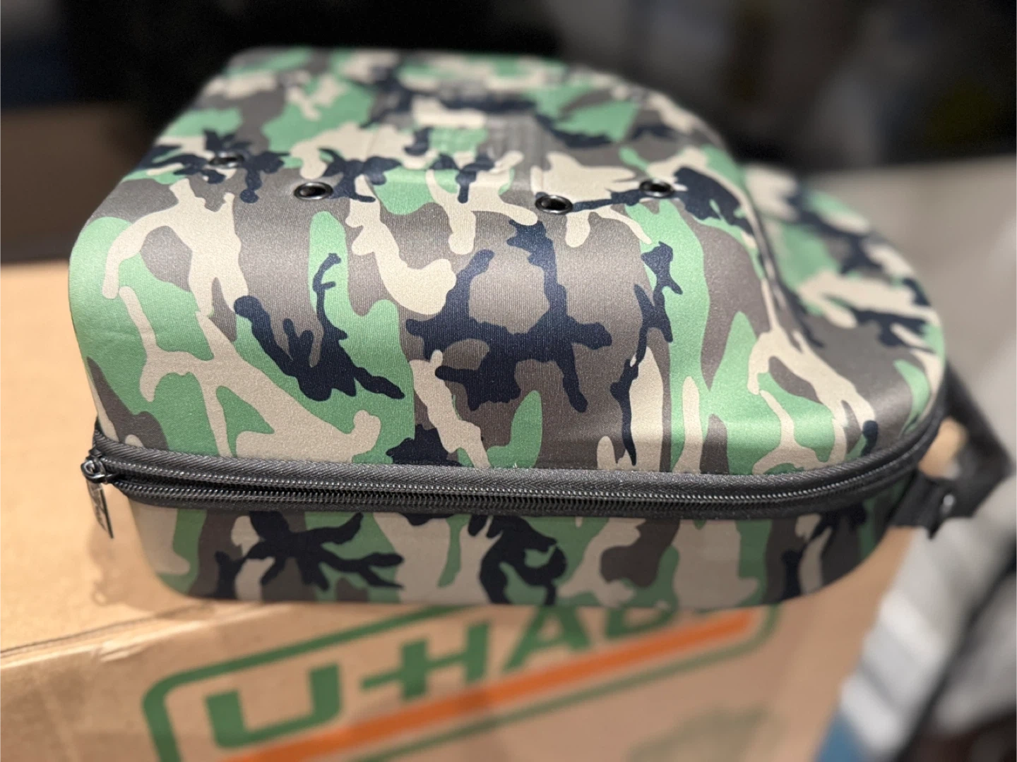 Selling a New Era cap carrier in a cool camo pattern! It's in great shape and perfect for keeping your hats protected. The carrier has a zipper closure and a handle for easy carrying