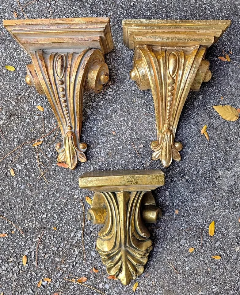 Vintage Gilt Wall Corbels / Architectural Shelf Brackets