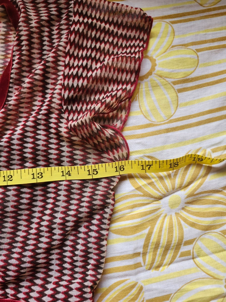 label size S, pit to pit laying flat is 16in, underbust (piping doesn't stretch well) laying flat is 13.5in