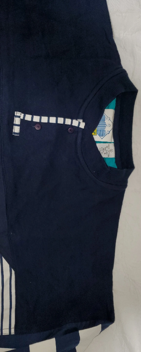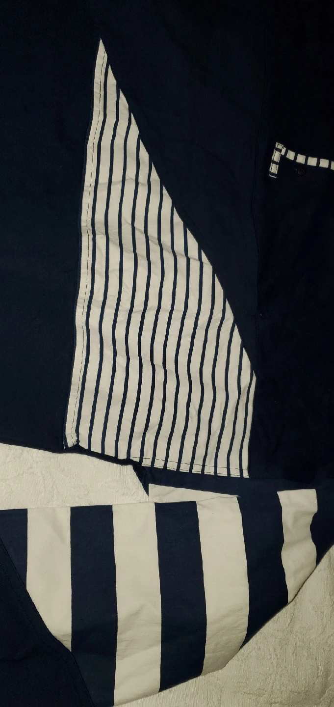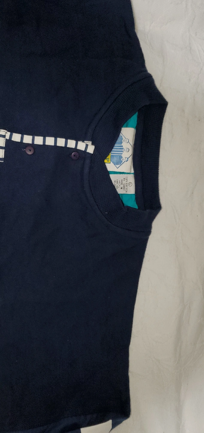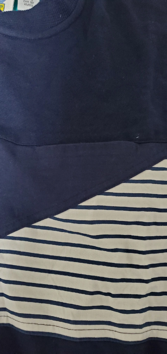 22LINE-UP Navy blue sweatshirt with white stripes! It's a size -L and in great condition. The design features a unique patchwork style with stripes on the sleeves and a small detail on the chest. Perfect for a casual, comfy look!