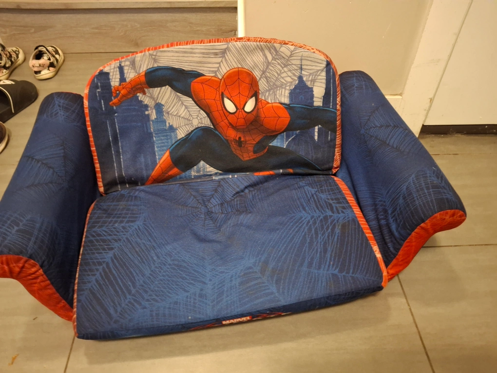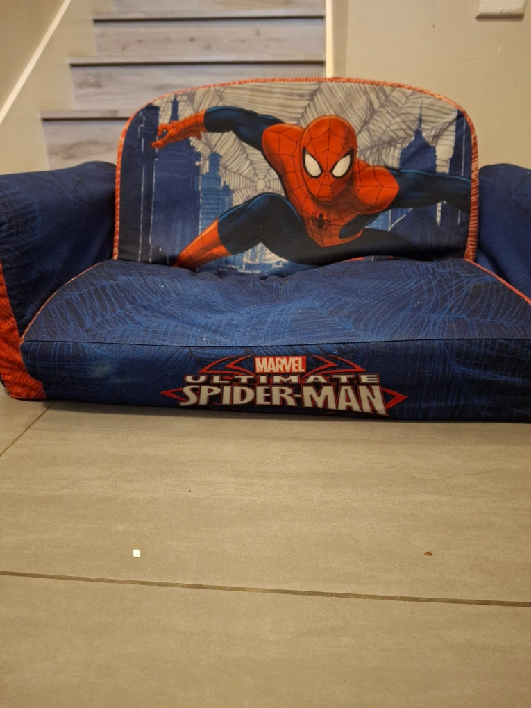Snuggle up with this Marvel Ultimate Spider-Man flip open sofa! It's in great shape and perfect for a little superhero's downtime. The flip-open design makes it versatile for sitting or lounging
