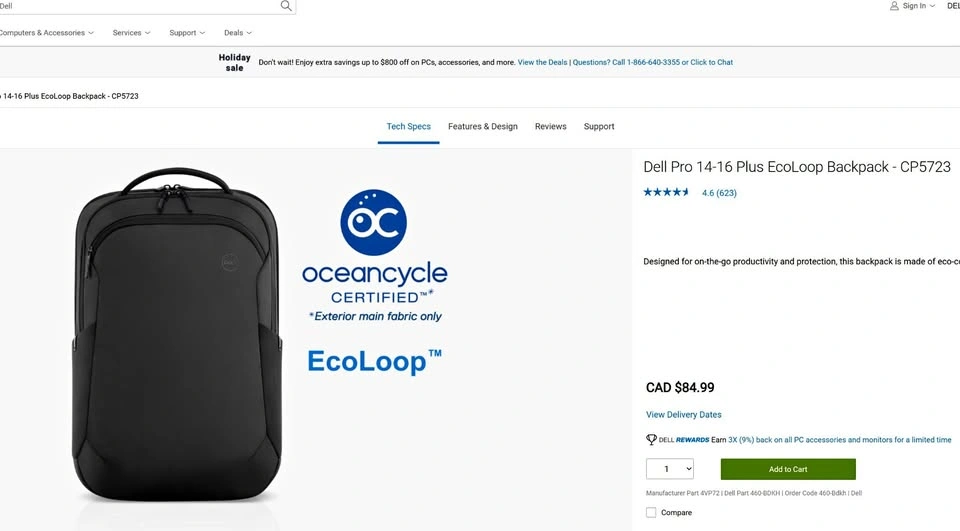 Dell Pro EcoLoop Backpack CP5723 14-16 Plus