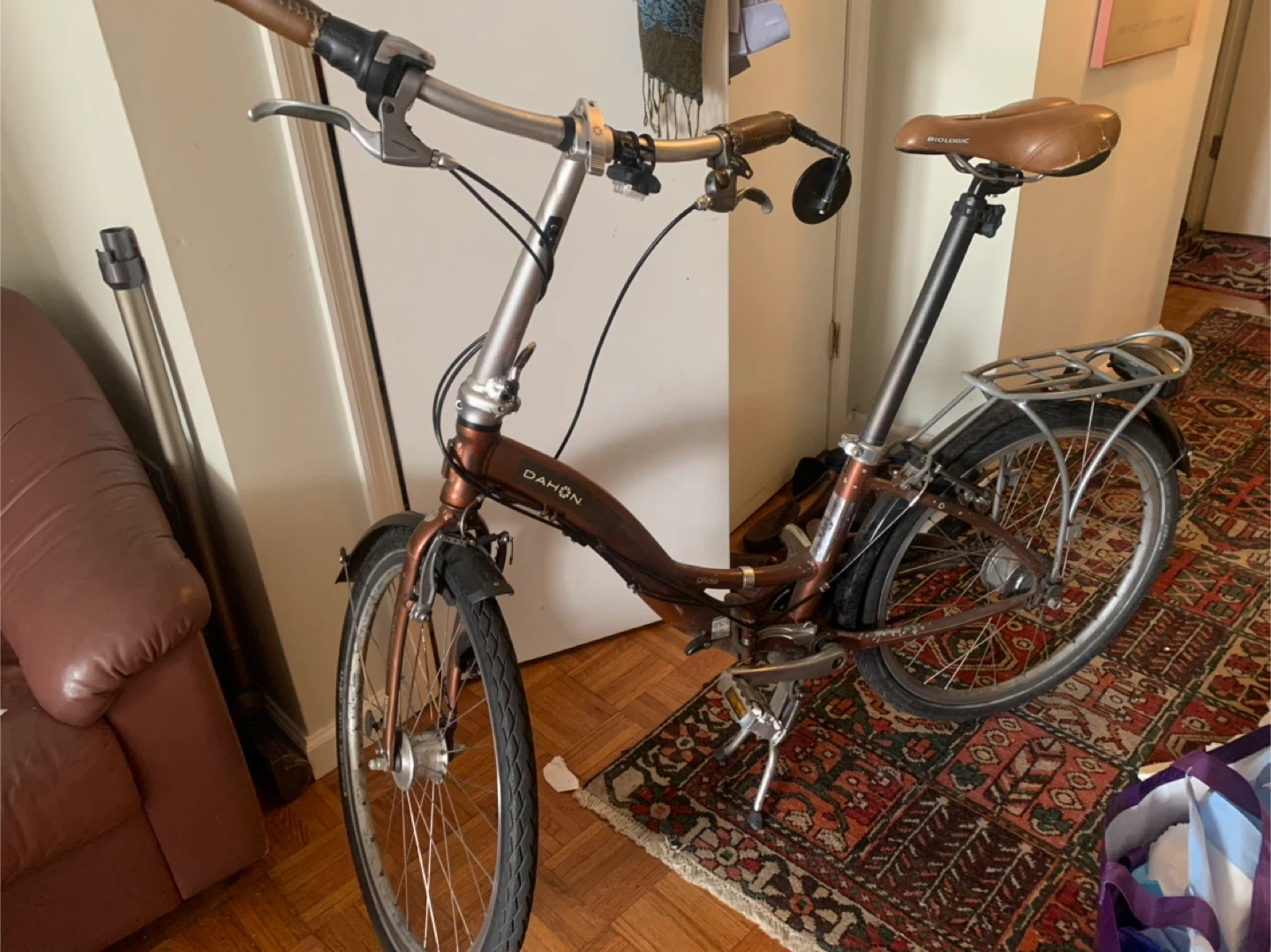 Selling a Dahon glide folding bike. It's in good condition and ready for a new owner! Fully functional. Folds easily. Some paint chipping.