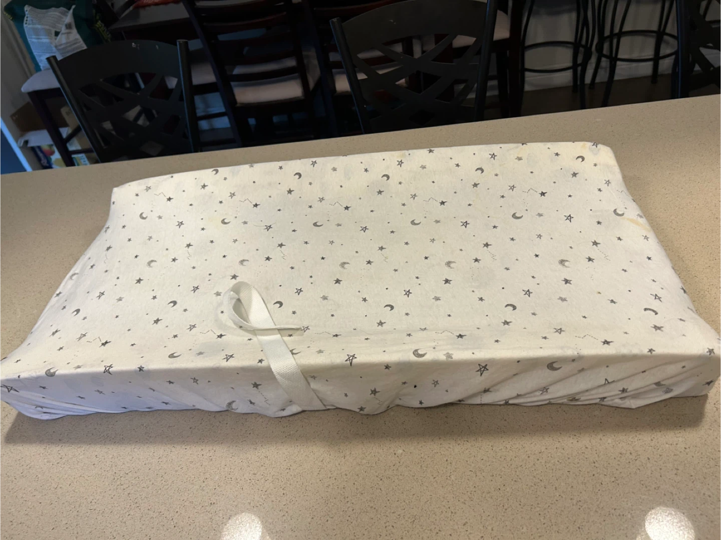 Changing pad with cover with a cute stars and moons pattern! It's in good condition and ready for a new home. Perfect for adding a touch of whimsy to your little one's changing station