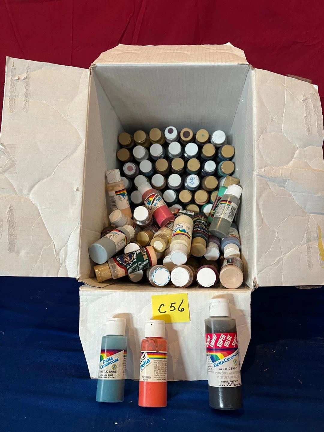 Selling a lot of acrylic paints, 72 bottles included, some opened and some unopened! Various brands like Americana and Delta! There are a variety of colours included and works out to less than $.70 per bottle. Perfect for arts and crafts projects.
