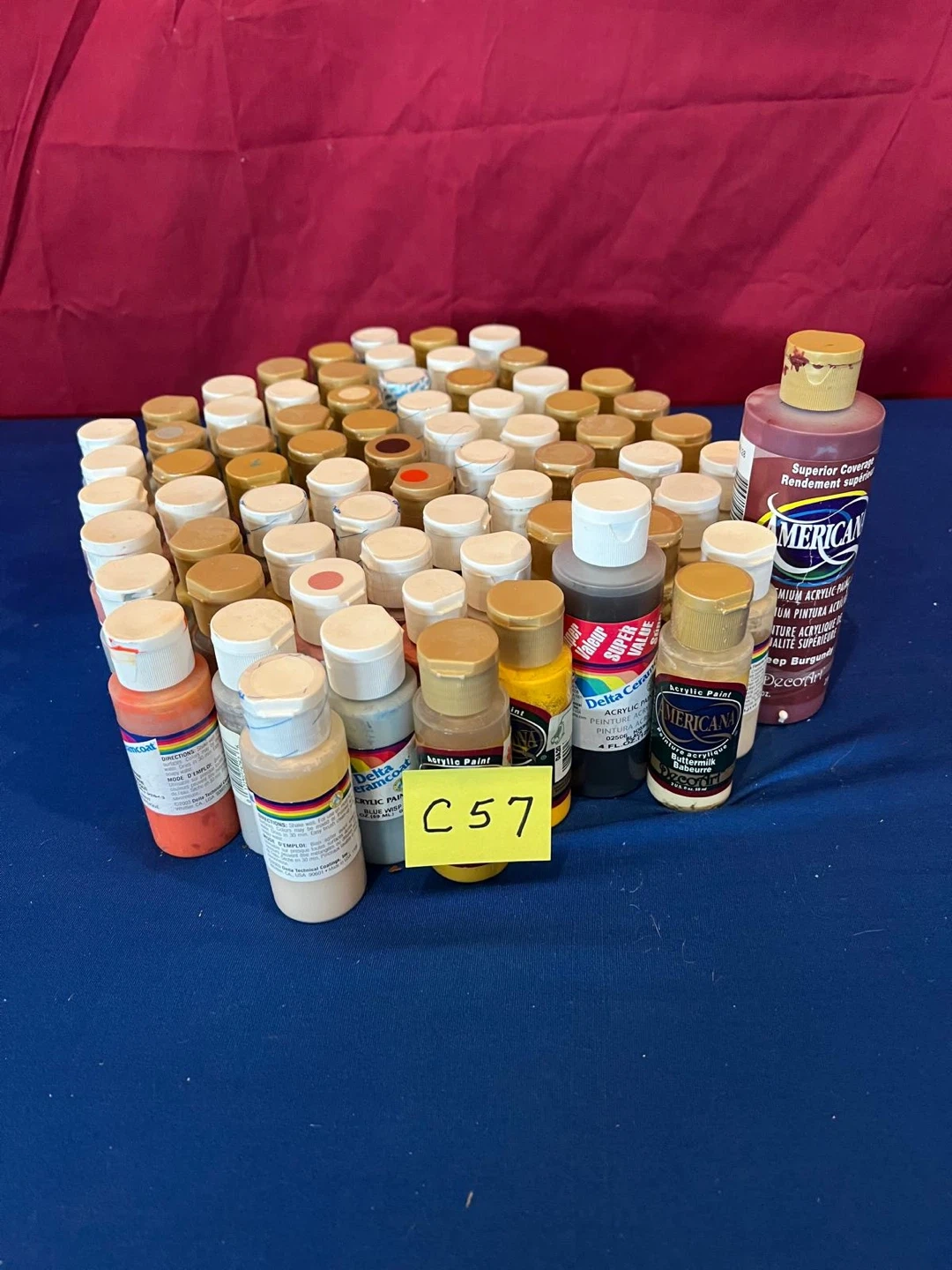 Selling a lot of acrylic paints, 72 bottles included, some opened and some unopened! Various brands like Americana and Delta! There are a variety of colours included and works out to less than $.70 per bottle. Perfect for arts and crafts projects.