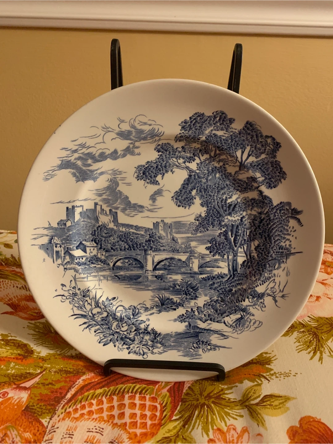Selling a lovely vintage Wedgwood "Countryside" plate! It features a beautiful blue and white design with a detailed landscape scene of a bridge, river and castle. The plate is in great condition with no chips, cracks or crazing. It would make a wonderful addition to any collection for a plate wall or rail. A charming piece for your home! Cash only please. Props not included.