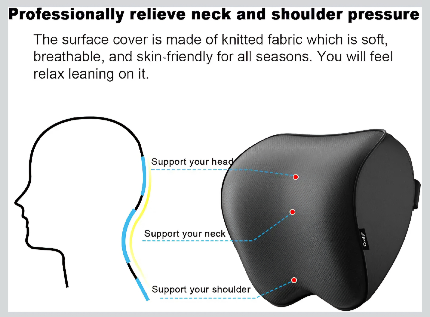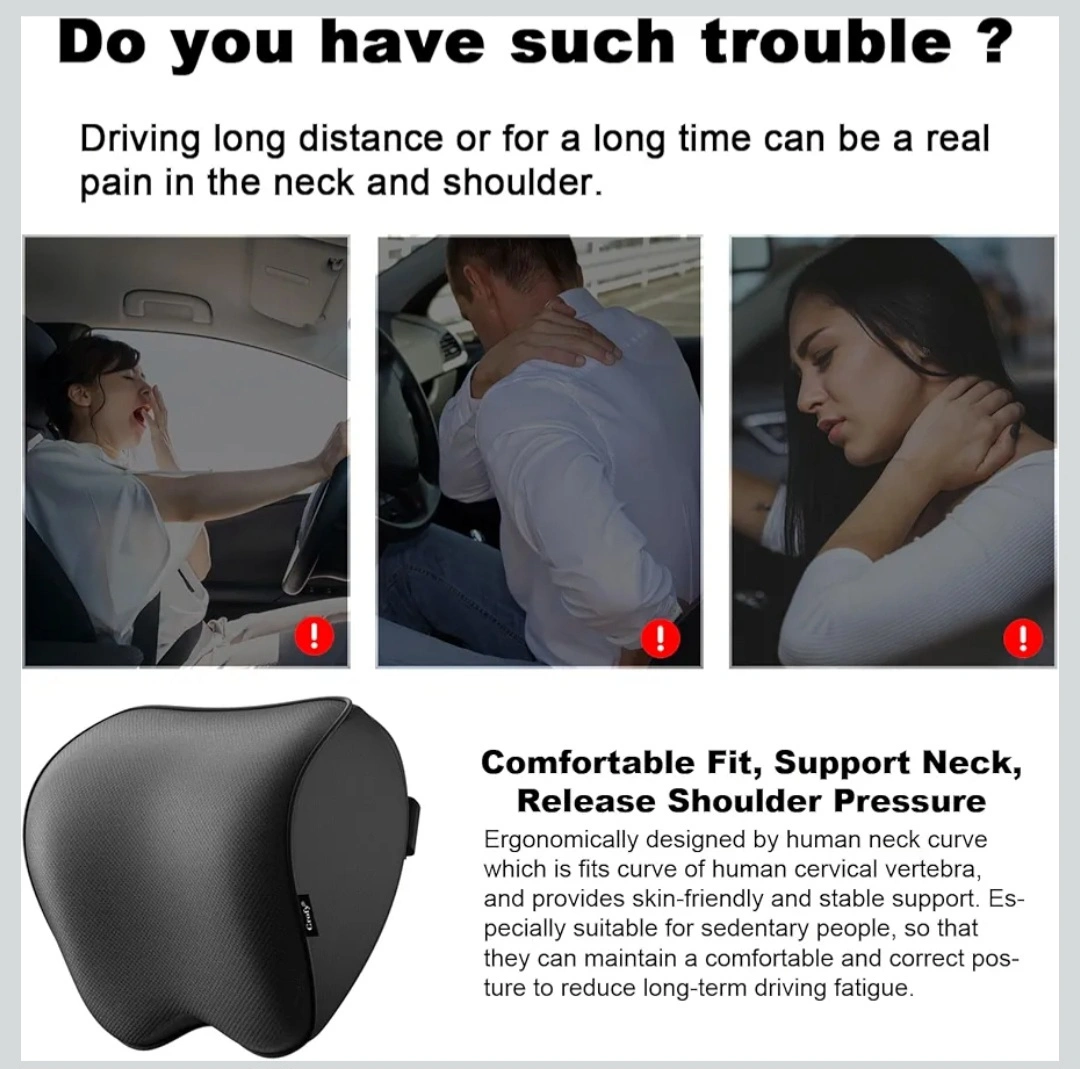 NECK PAIN RELIEF: Comfort your neck and shoulder while driving long distances. 100% pure memory foam provides great support for your cervical spine and head. Help maintain the correct posture for driving, and make your driving safer, reduce fatigue and pain.