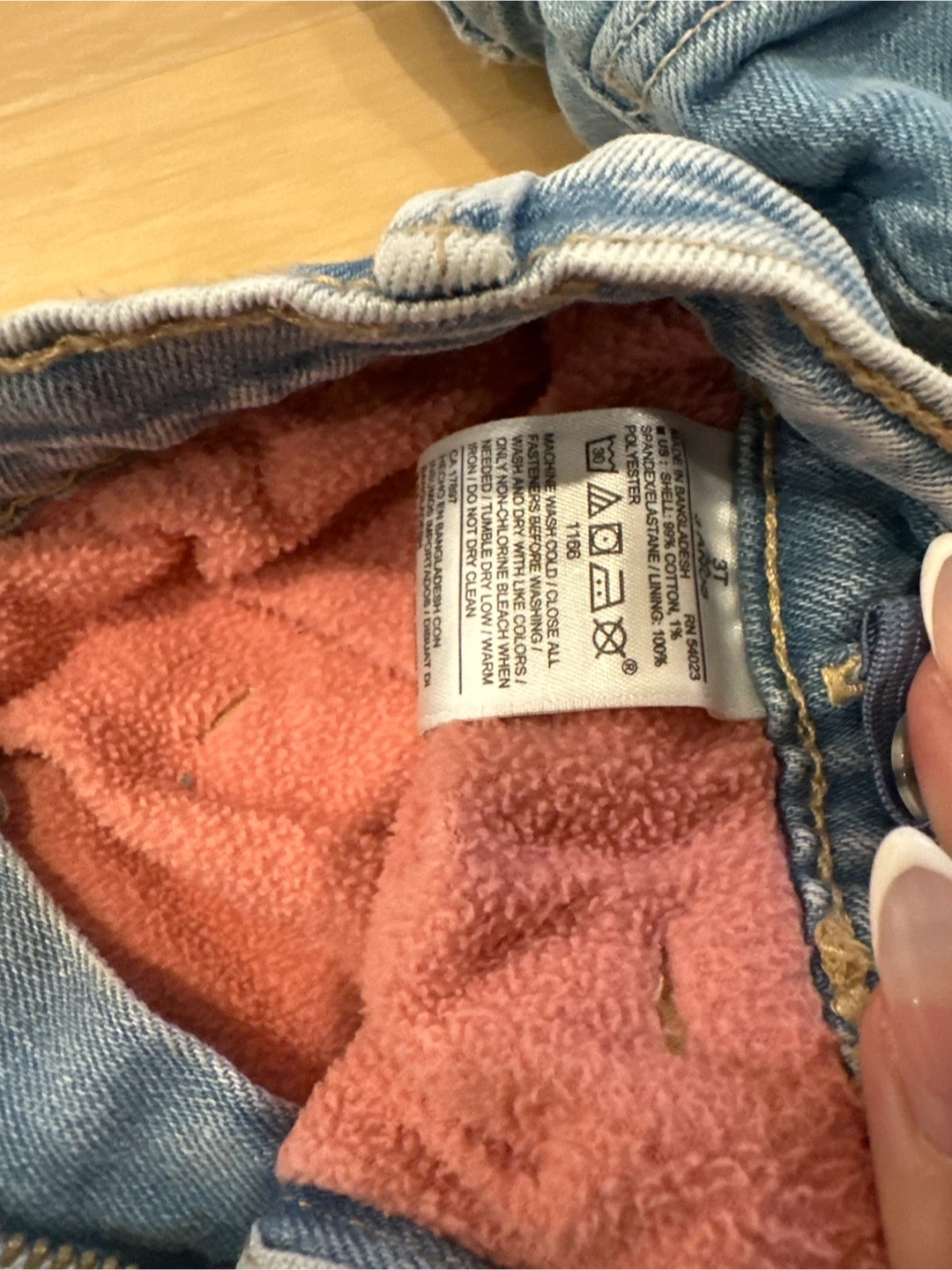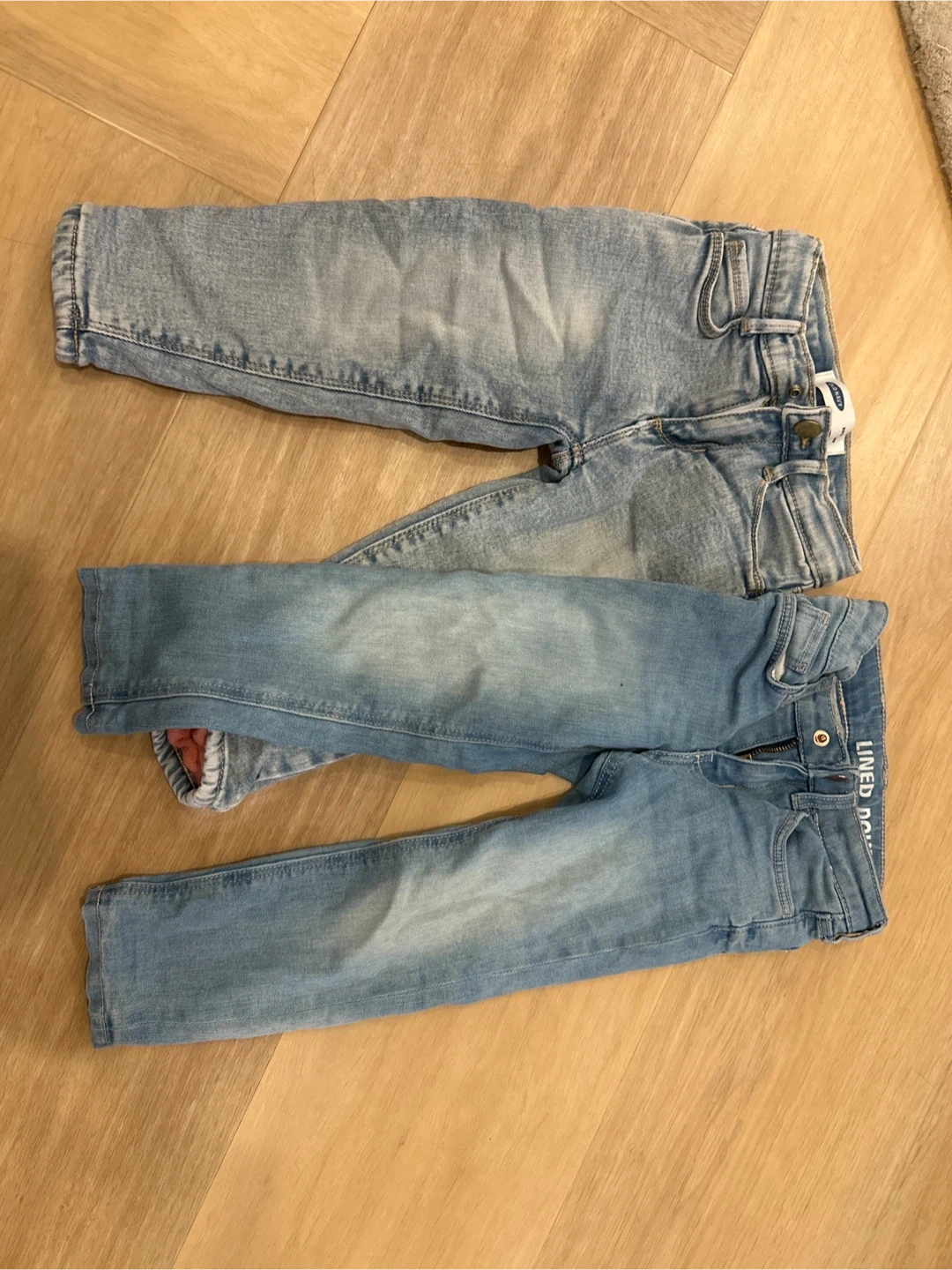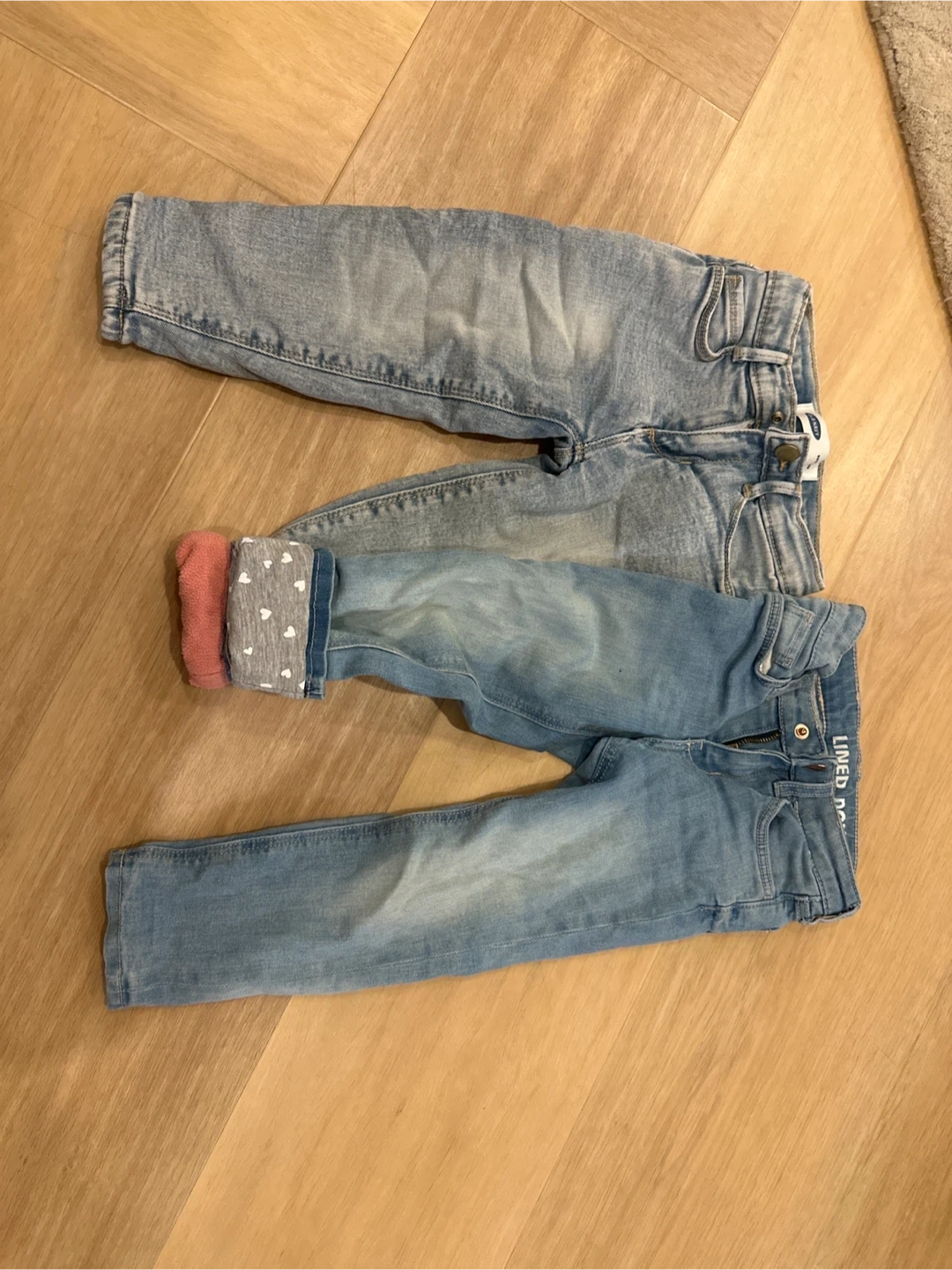 Two pairs of lined jeans for your little one! One is from Old Navy and the other is from H&M. Both are size 3T. The H&M jeans are slim fit and lined.