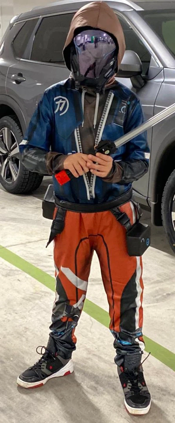 Selling a Hyper Scape ACE costume in size large (12-14)! It includes three pieces: a jumpsuit, a belt, and a helmet. Perfect for Halloween or cosplay!