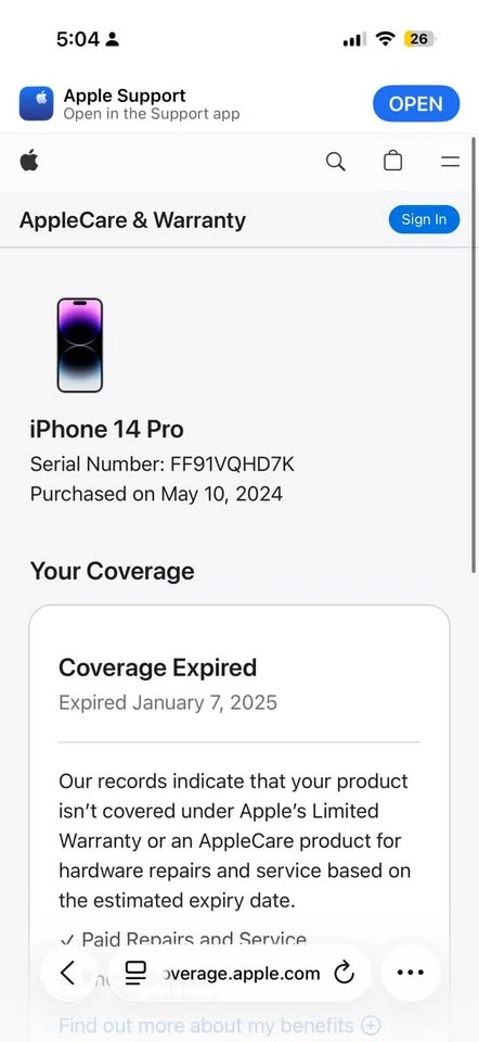 AppleCare Replacement device (replaced by Apple, originally purchased May 2024, but I bought from Best Buy on July 2025 for $873.53