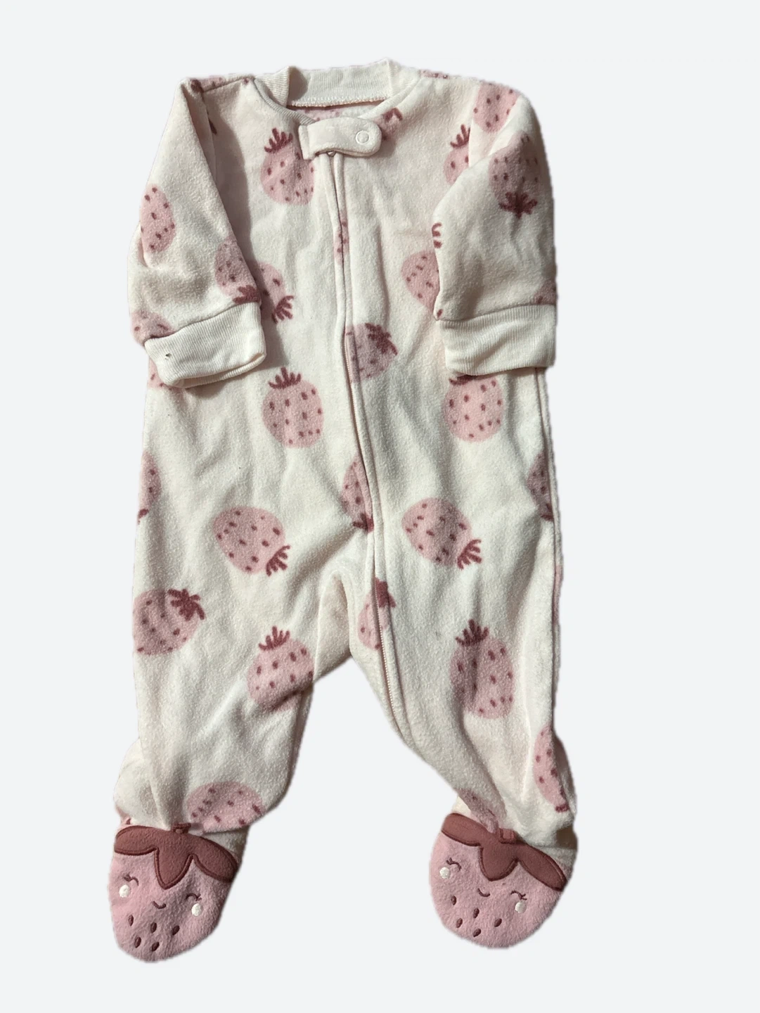 Super cute footed pajamas with a sweet strawberry print! Perfect for keeping your little one cozy and warm during those chilly nights. The footies have adorable strawberry details as well!