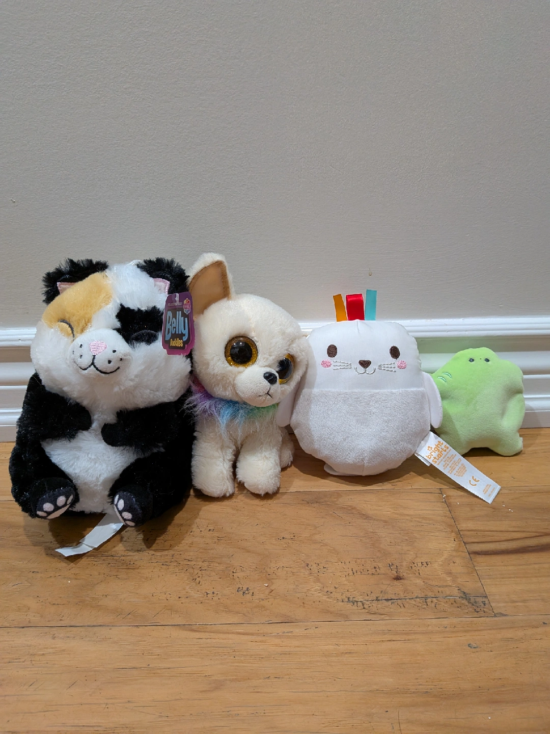 1000+Selling a collection of adorable plush toys! Included are a Belly Buddies plush and a Bright Starts plush toy. They're in great condition and ready for a new home! $1 each