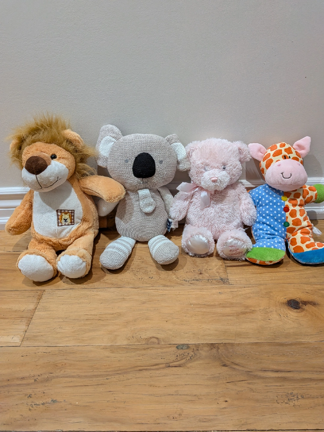 1000+Selling a collection of cute plush stuffed animals! There's a lion, a koala, a pink bear, and a giraffe. They are all in great condition and looking for a new home. $1 each