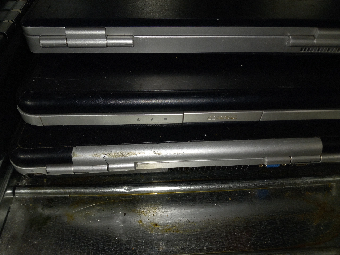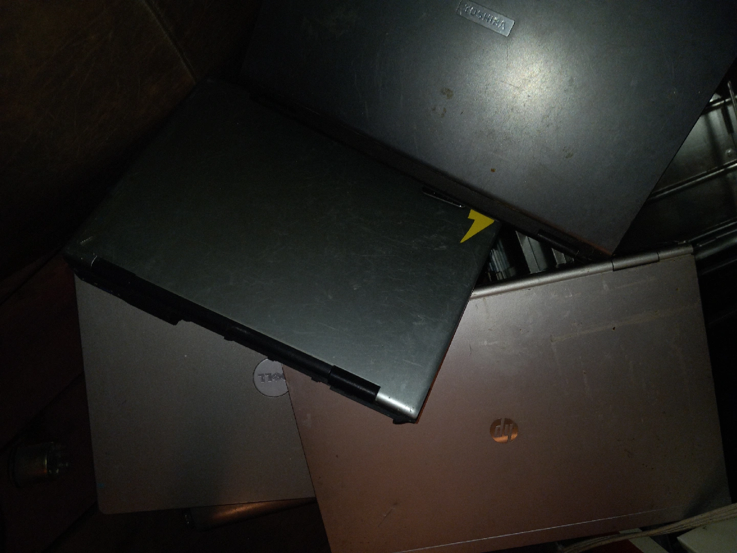Selling 35 used laptops. There's an HP and a Toshiba. They have signs of wear from use. all kinds of different brands must take all $100