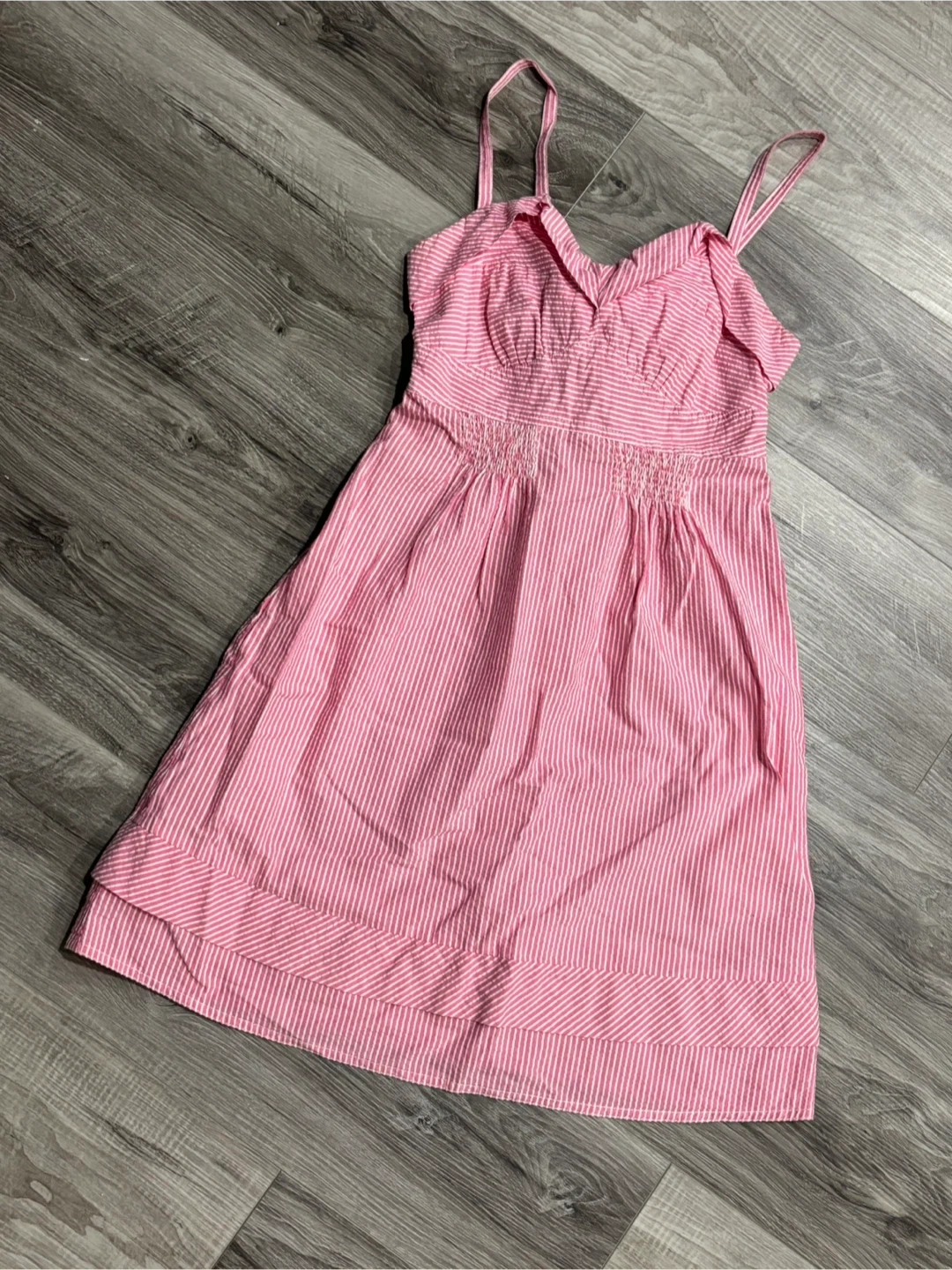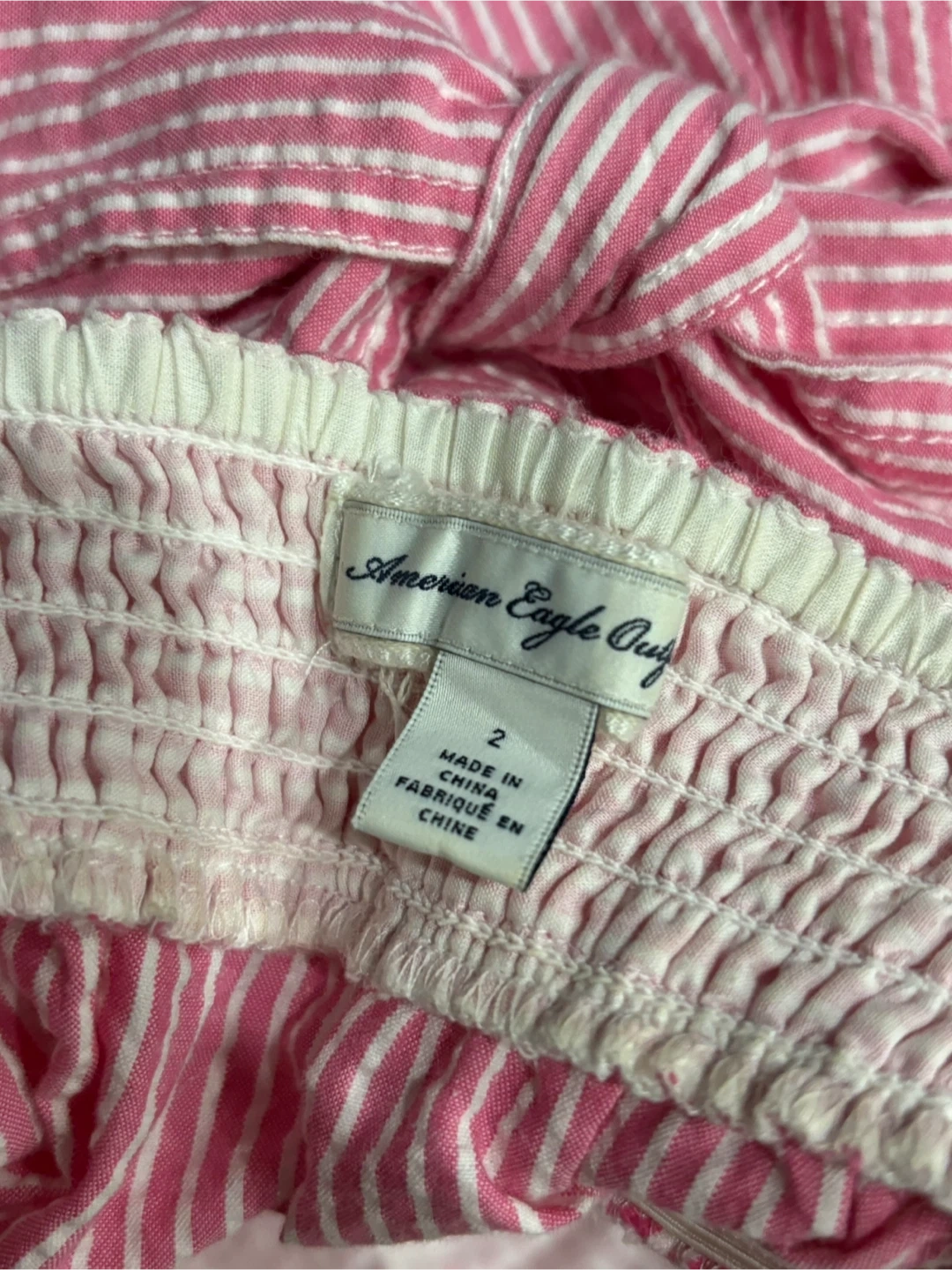 This adorable American Eagle sundress is perfect for summer! It features a cute pink and white striped pattern and a flattering silhouette. The dress is a size 2 and has a lovely bow detail on the back. It's in great condition and ready for a new home!