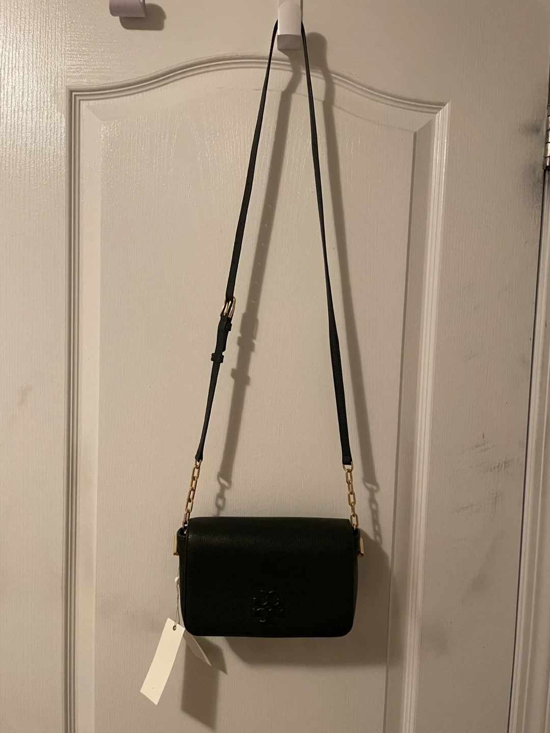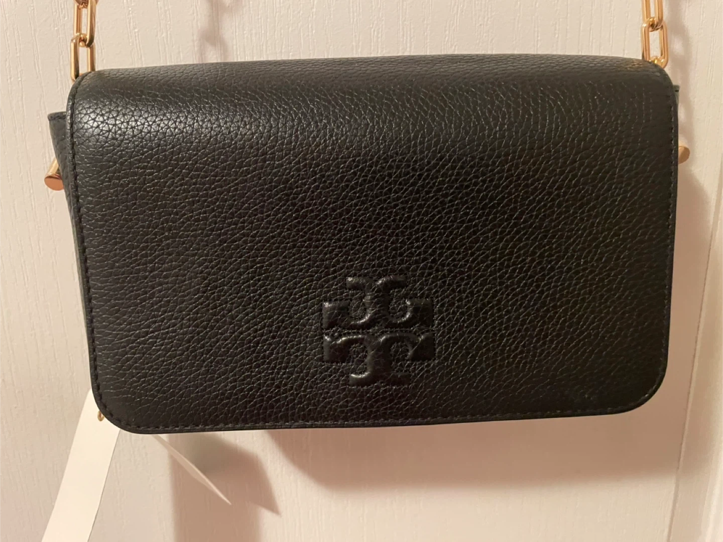 Selling a new Tory Burch crossbody bag in black leather! It's in great condition and would be a stylish addition to any outfit. The gold chain adds a touch of elegance. Feel free to message me with any questions!