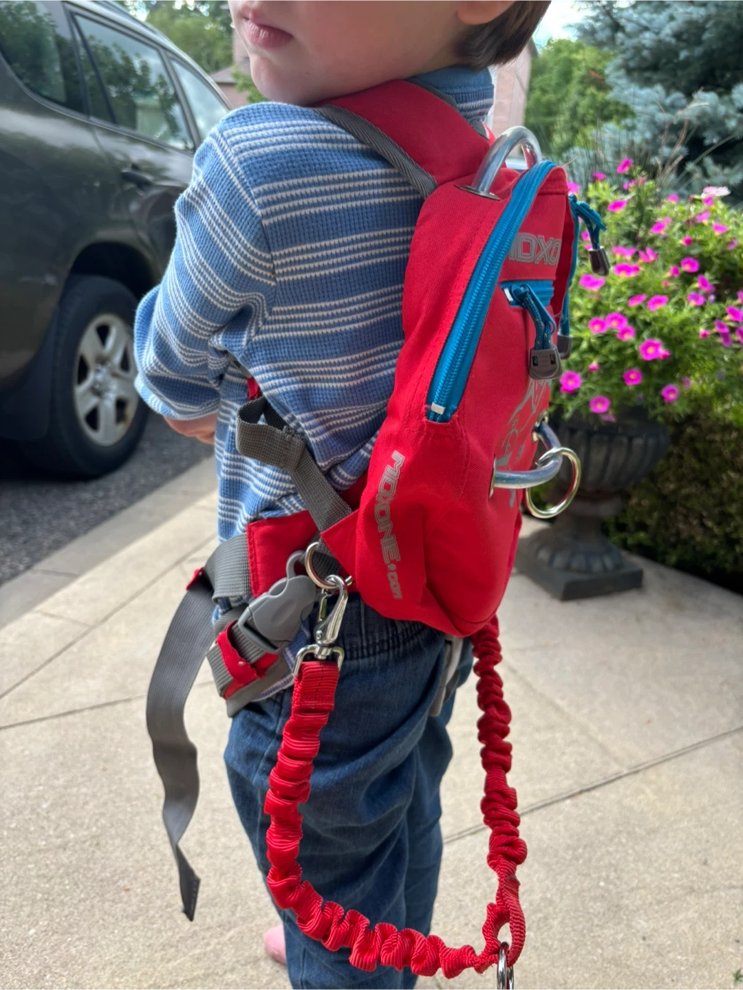 75This is a super cute red Moxone kids backpack with a leash! It's perfect for keeping your little one close by while out and about. The backpack is in great condition and ready for a new adventure
