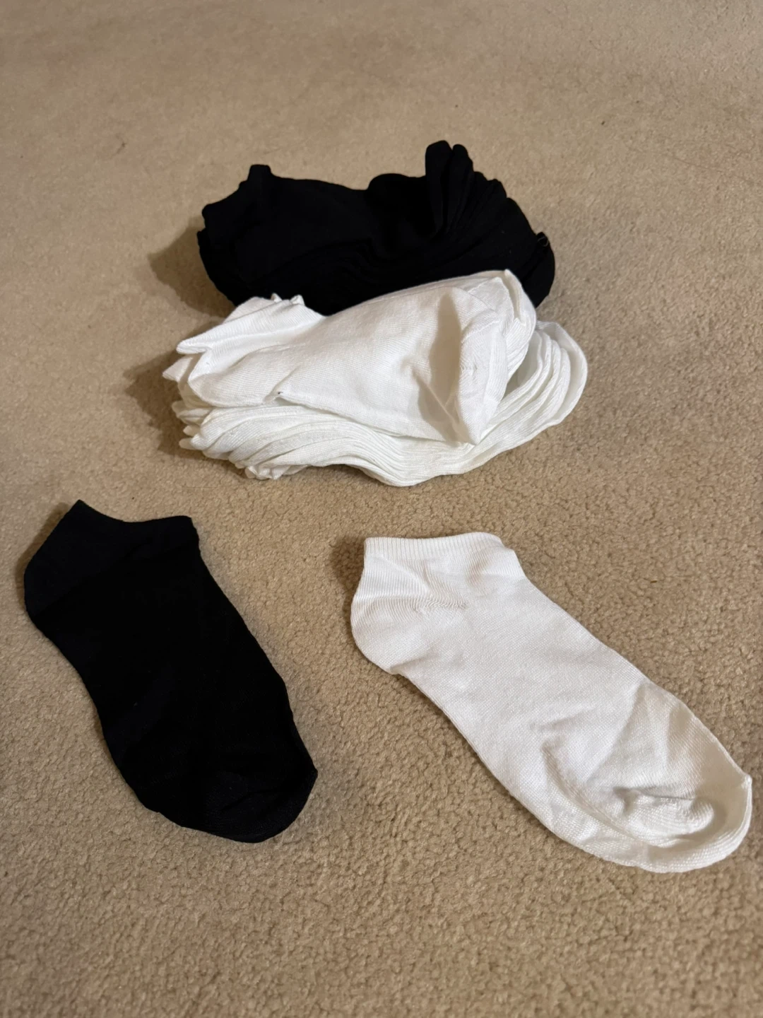 Selling a bundle of ankle socks in black and white. They're brand new and ready for a new home!