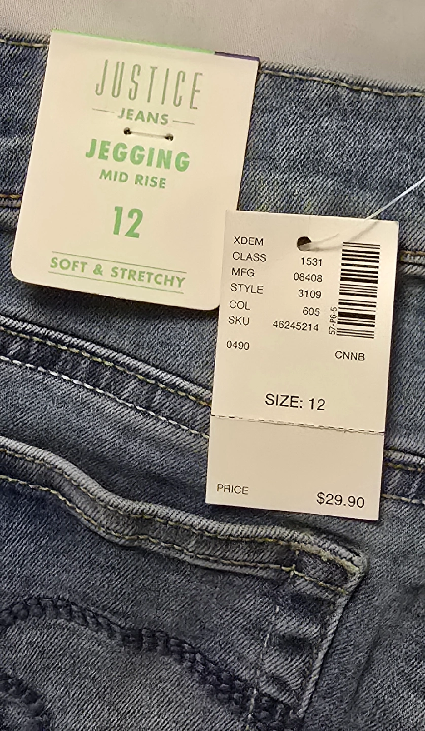 NEW! Girls Justice Jeans with Side Jewels! - Size 12 Youth