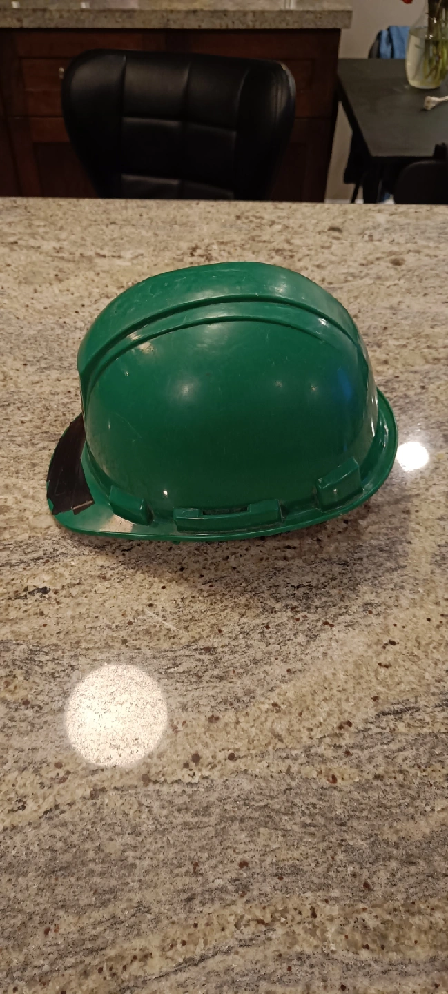 Selling a green hard hat. It shows some signs of use, but is still in good working condition. Perfect for construction or any job requiring head protection!