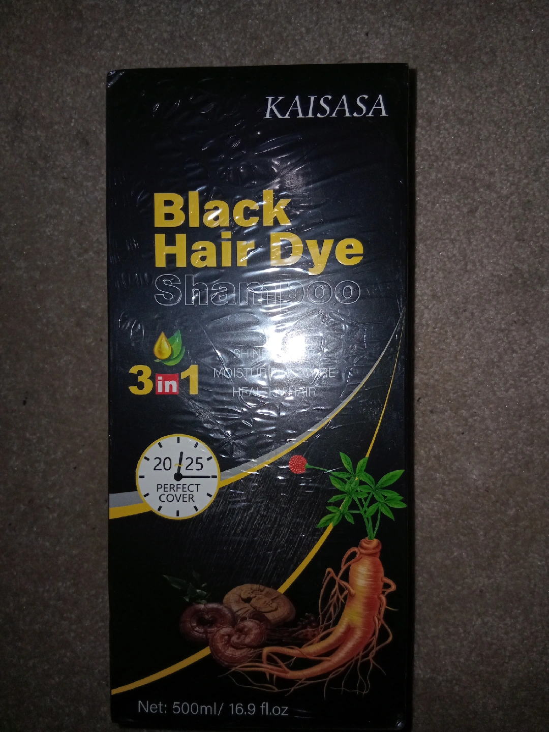 60Selling a KAISASA Black Hair Dye Shampoo. It's a 3 in 1 formula designed to shine, moisturize, and promote healthy hair! The bottle contains 500ml / 16.9 fl.oz of product. It also offers perfect cover for 20/25.
