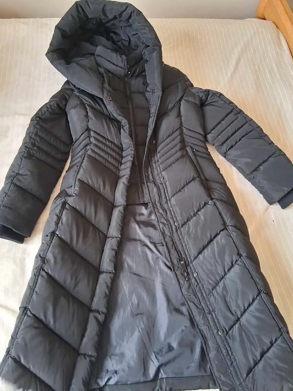 26Stay warm and stylish with this Point Zero long, black puffer coat in size small! This coat is perfect for cold Canadian winters. Additional features include: * Long length for maximum coverage * Puffer design for added warmth * Stylish black colour Don't miss out on this fantastic deal! send me a message to arrange a pickup.