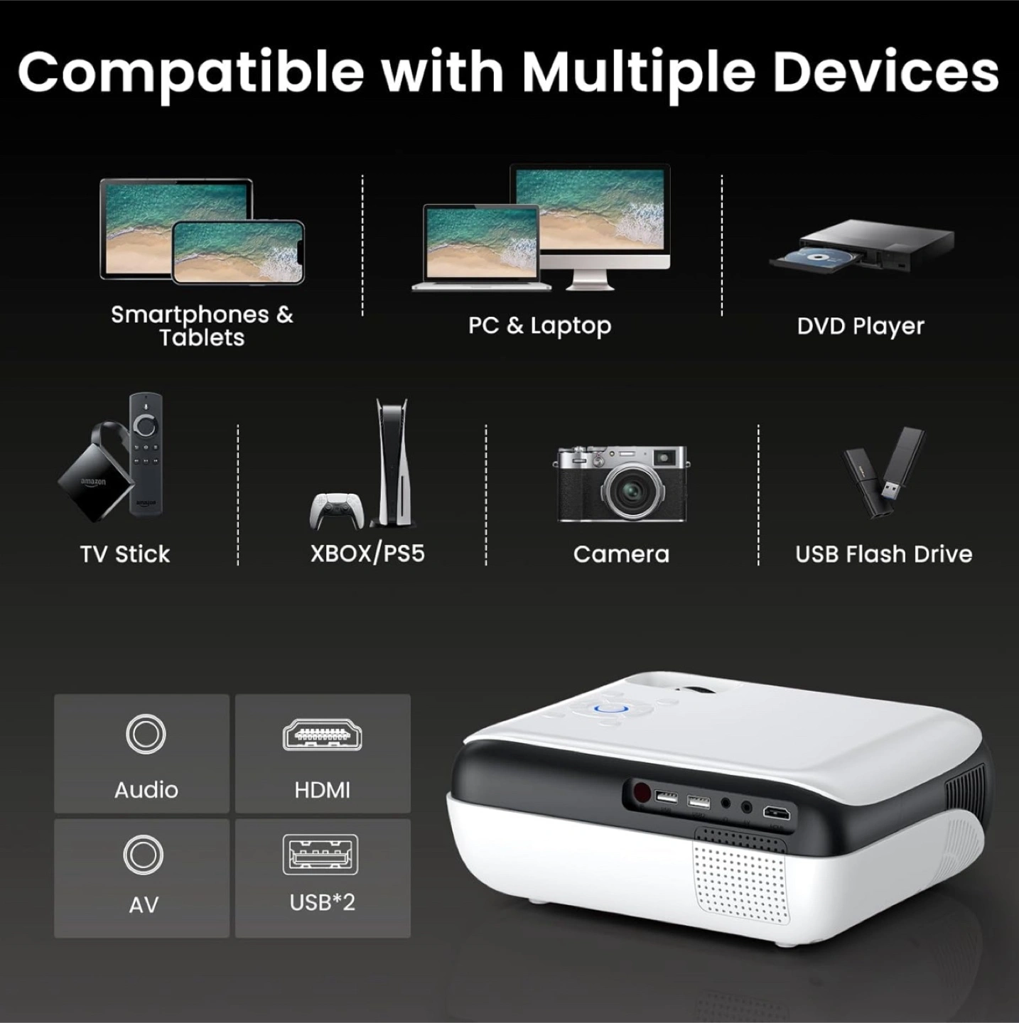 Selling a brand new HAPPRUN Native 1080P Bluetooth Projector, perfect for home entertainment, bedroom setup, or outdoor movie nights. Enjoy stunning Full HD visuals and clear built-in sound, easy to set up and compatible with multiple devices.