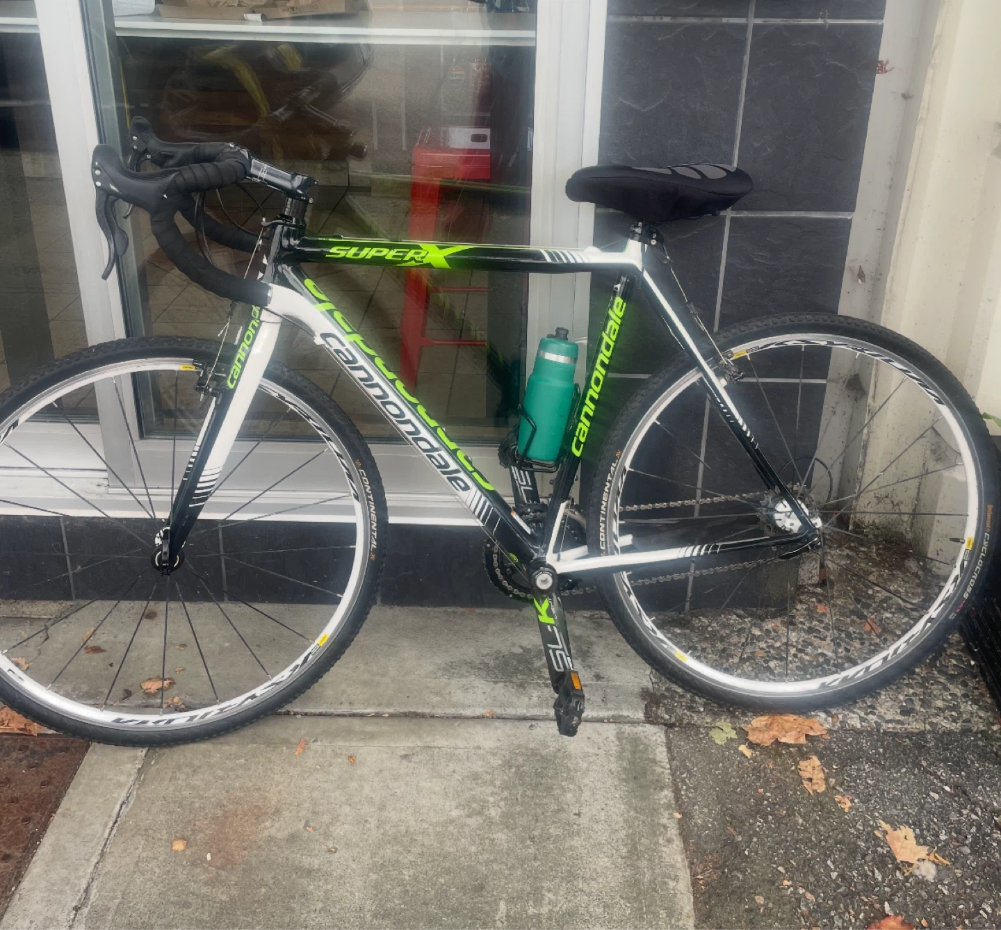 Selling a Cannondale Super X bike! It's in great shape and ready for your next adventure. The frame is white and black with green accents. Perfect for cycling enthusiasts! Retails for 9k new. Carbon fibre, messaged me for more pics.