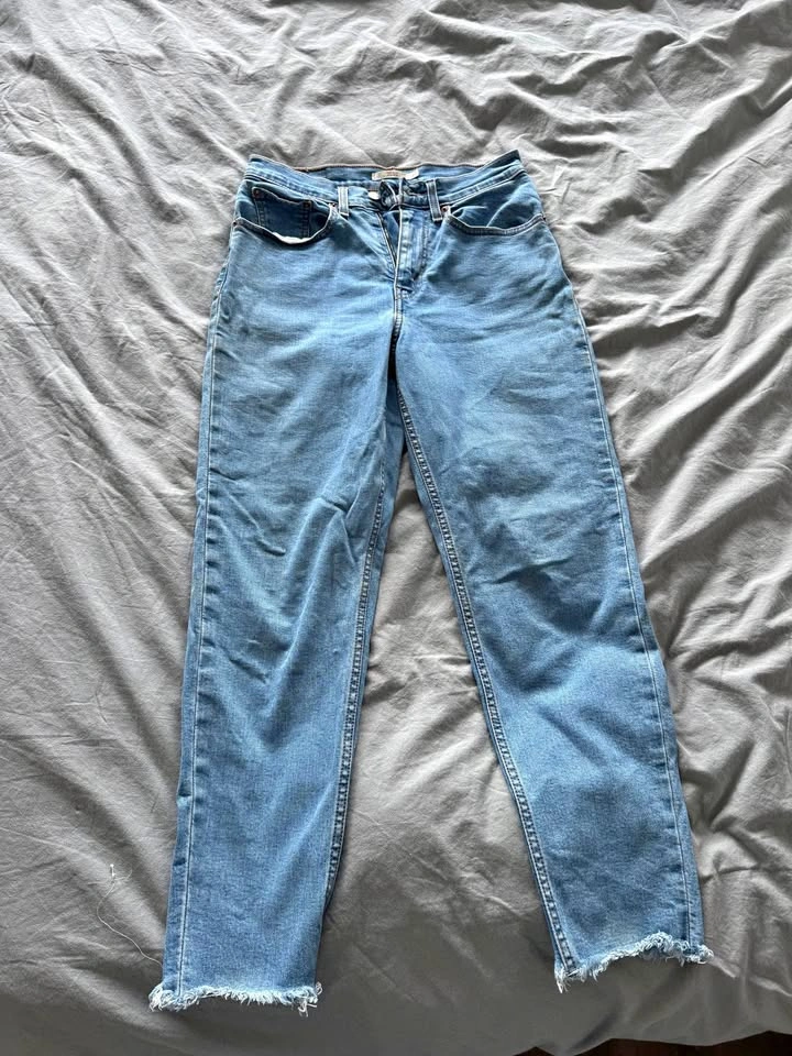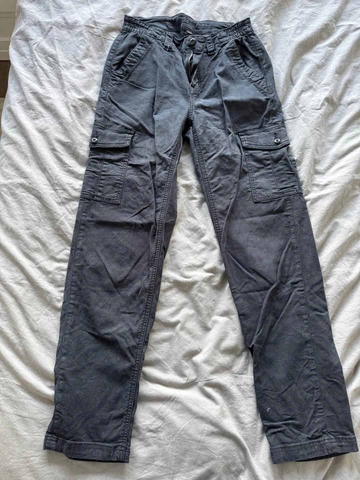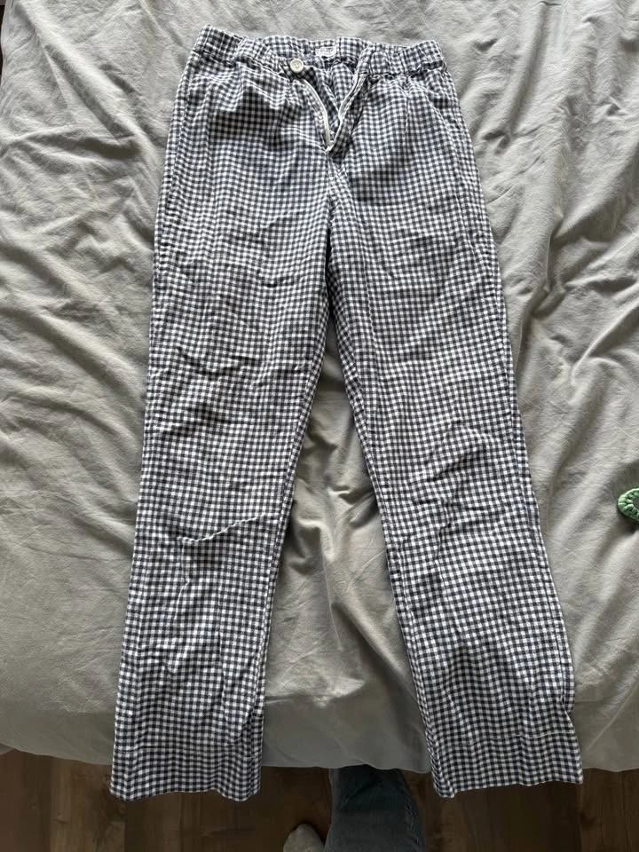 73Vintage Levi mom jeans size 27 - $20 Gap Faux leather pants size 10 (new with tags) - $20 Brandy Melville checkered pants size xs/s - $10 Flowy navy stripe pants (from Argentina) size s - $10 American Eagle Cargo pants size 2 - $15 Pick up in the West End