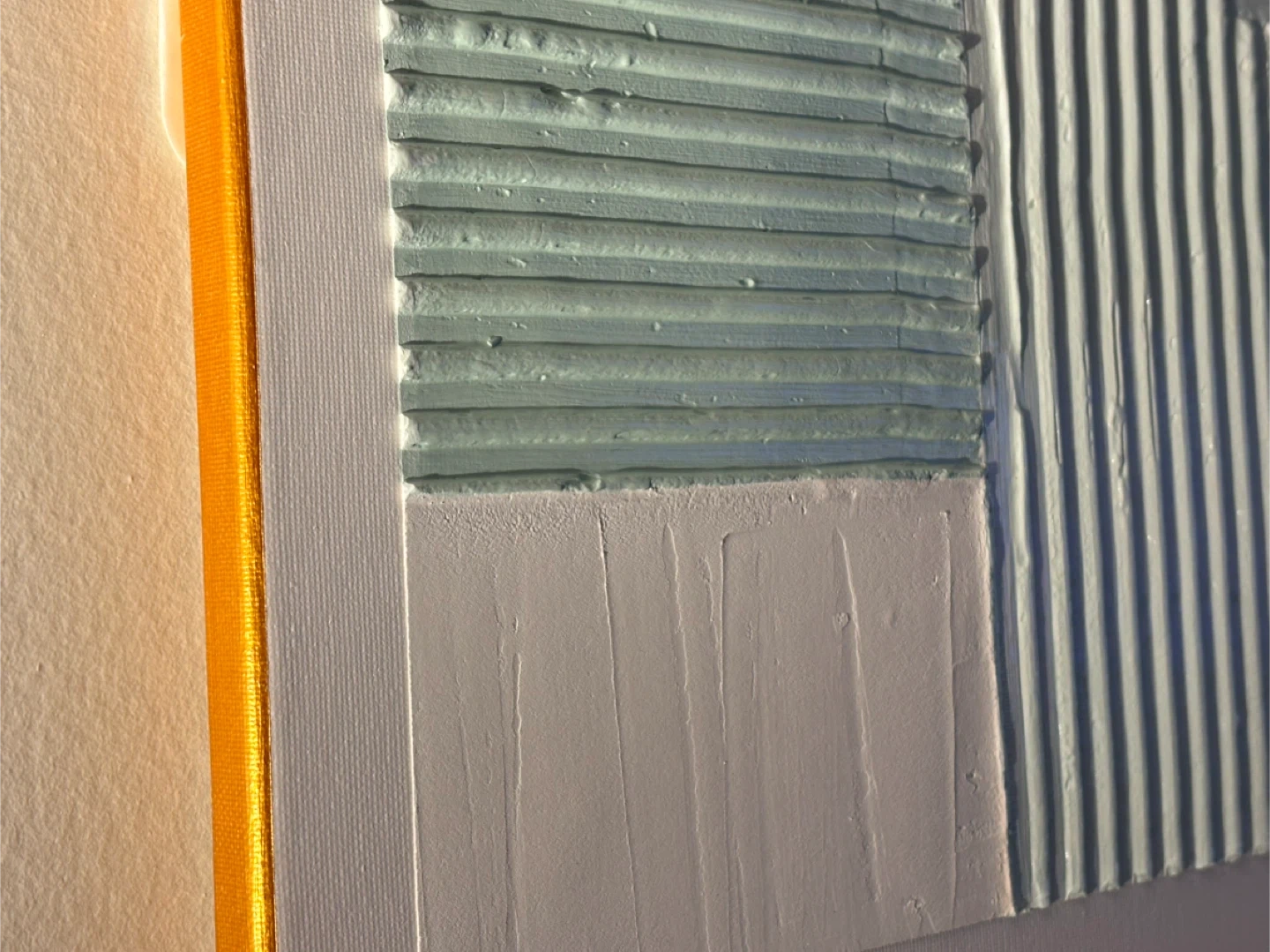 10Unique textured wall art piece! Features an abstract design with raised lines and a subtle colour palette. Perfect for adding a touch of modern art to your space. Ready to hang and enjoy! Smoke free and pet free home MEASUREMENTS: 20 inches by 16 inches