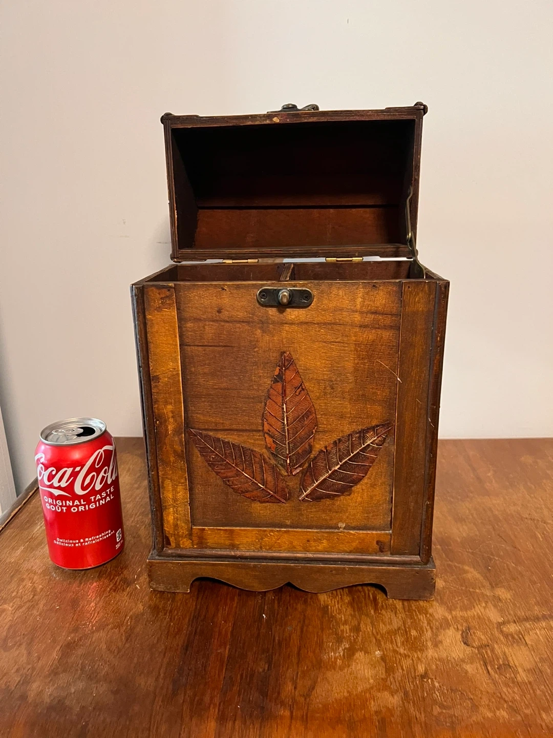 Selling a cute wooden treasure chest box! It has a unique leaf design on the front and a latch to keep it closed. Perfect for storing small items or adding a touch of rustic charm to your home decor