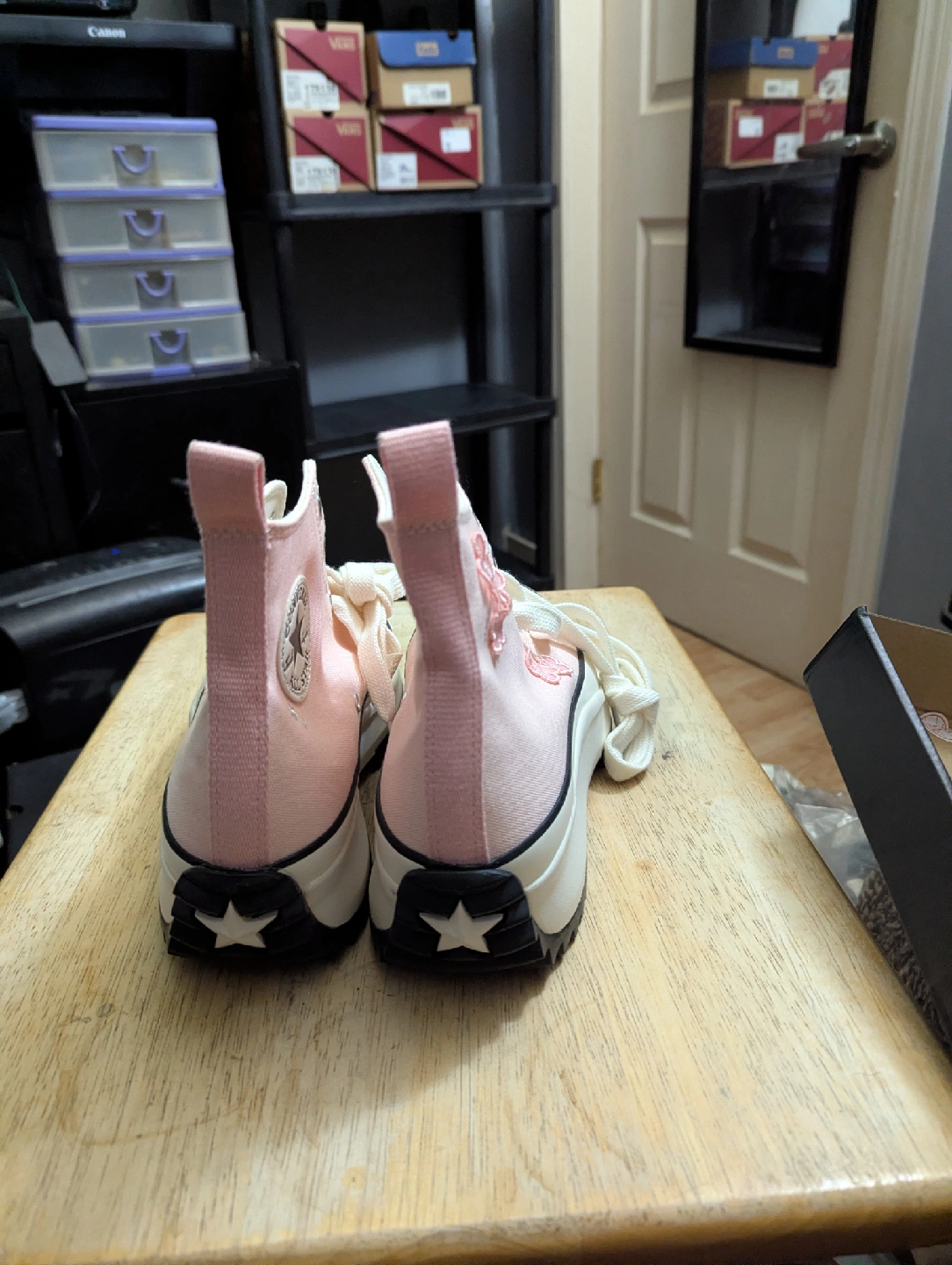 Selling a pair of Converse Run Star Hike high tops in women's size 10.5! They are a lovely pink colour with cute floral details. The shoes are in excellent condition and come with the original box!