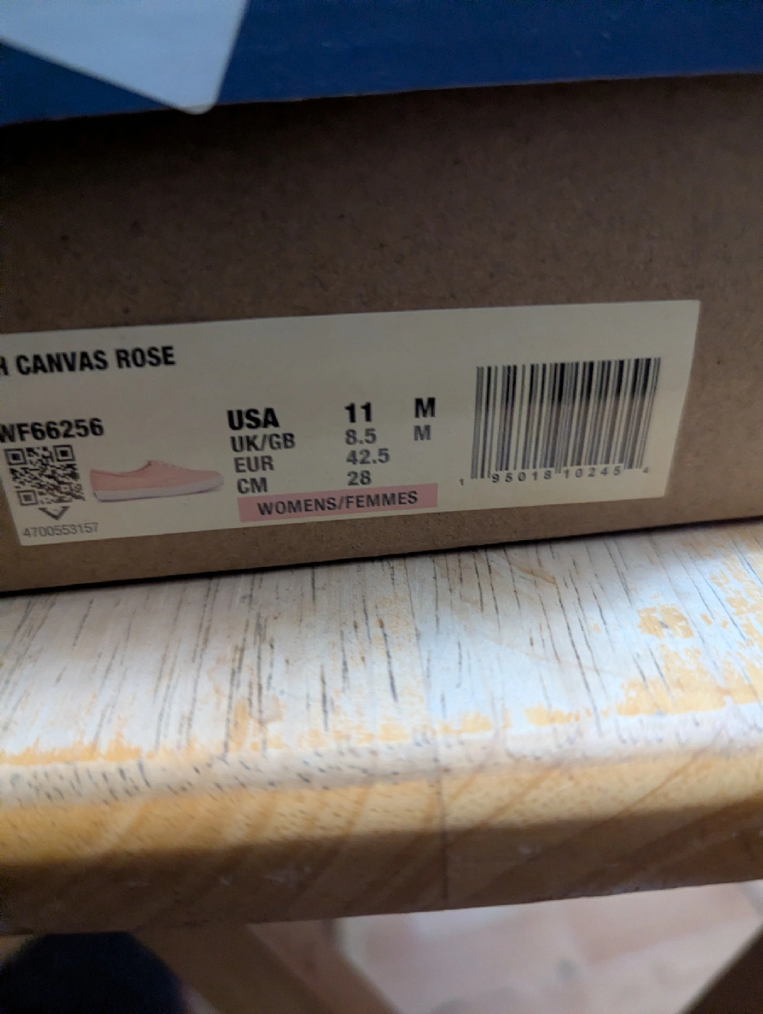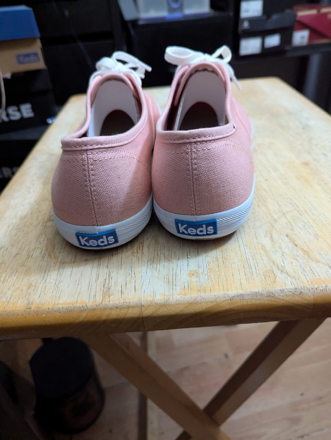 Selling a pair of Keds Champion Canvas Rose sneakers in a women's size 11. They're in great shape and ready for a new home! The box indicates the size is 11 USA, 8.5 UK/GB, 42.5 EUR, and 28 CM