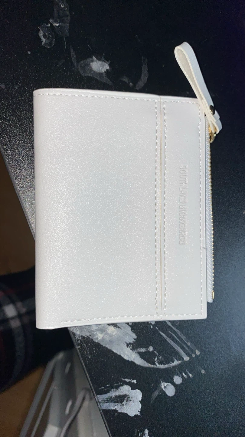 Selling a white wallet from Southland & Kangaroo. It's in great condition and has a convenient zip pocket and slots for cards and ID. Perfect for everyday use!