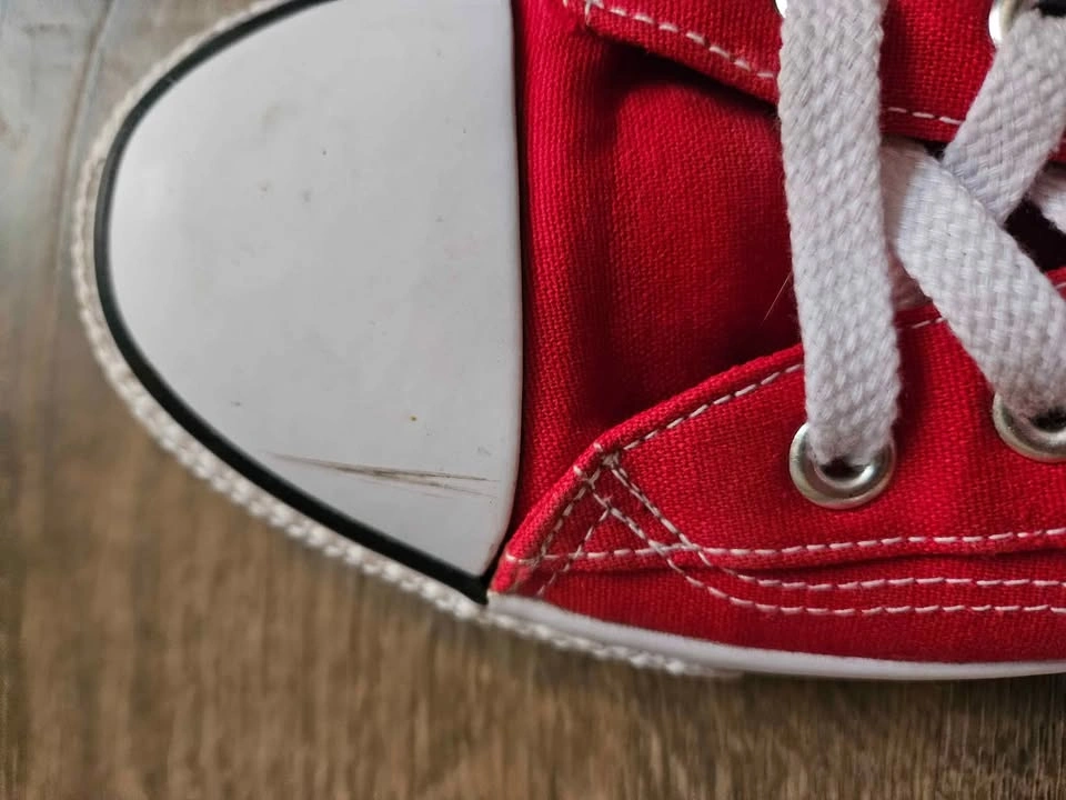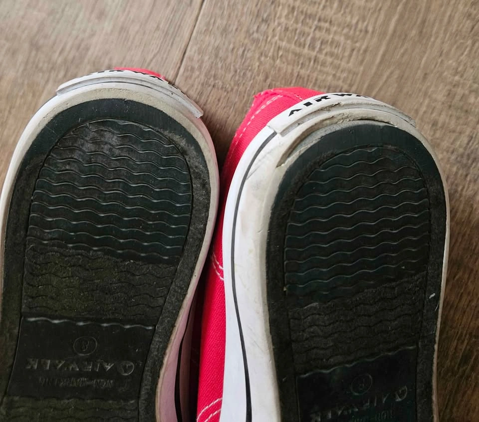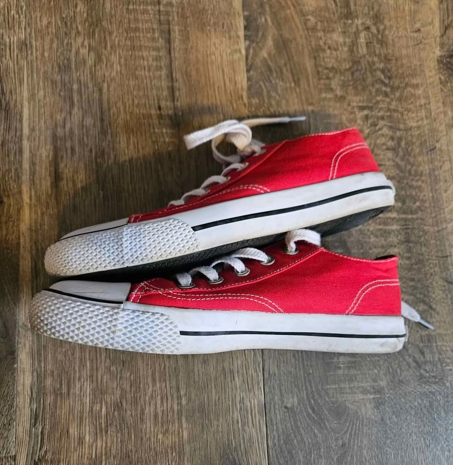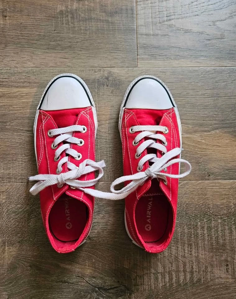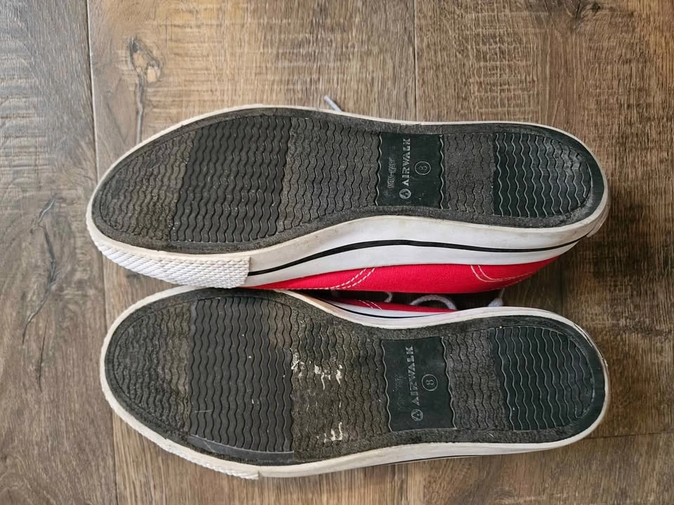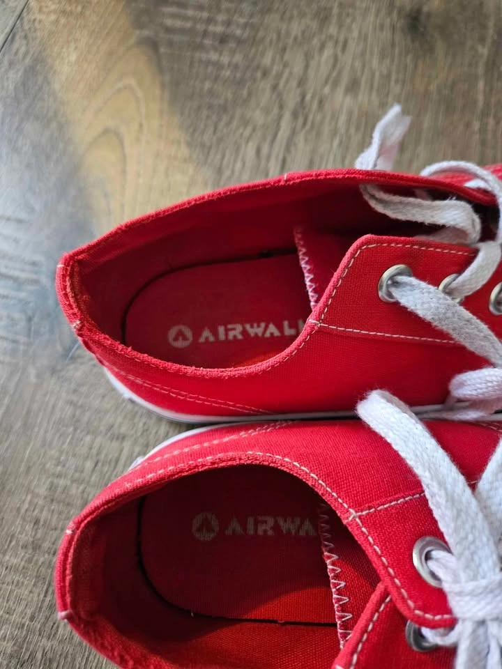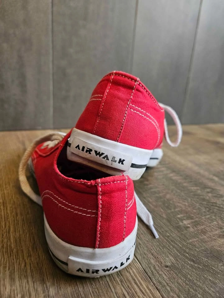 Stylish retro Airwalk red canvas sneakers featuring white laces and toe caps. Perfect for casual wear. Small scuff on right toe, wear on heal of left shoe (see photos). Smoke-free home. Size 8.