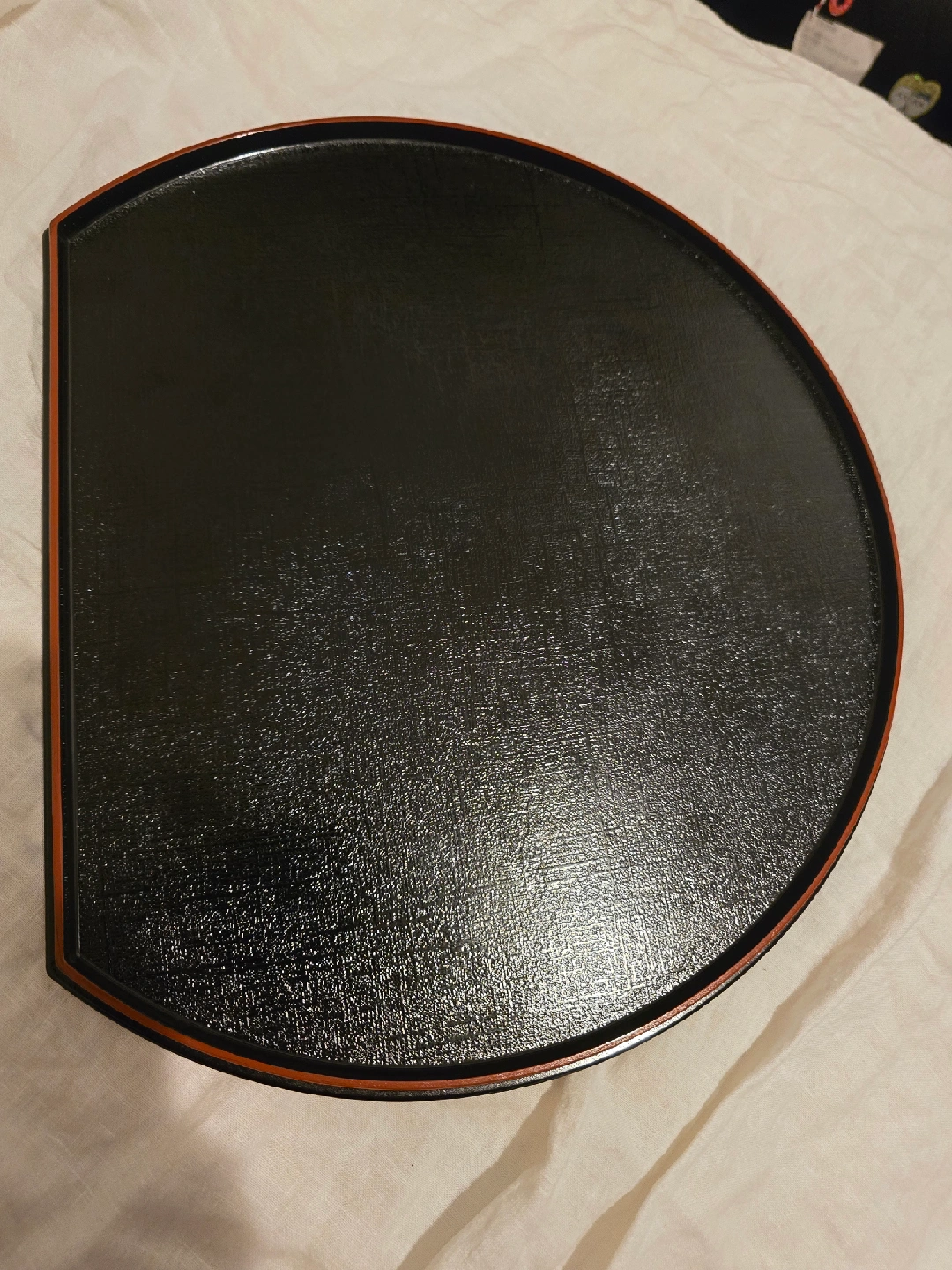 762Selling one round serving tray. One side is black with a red trim. Great for serving snacks or drinks. Great for your upcoming holiday decor. Lovely Plastic tray or placemat from Japan. 📌pick up near Esso M1R1S1 📌Victoria Park Ave