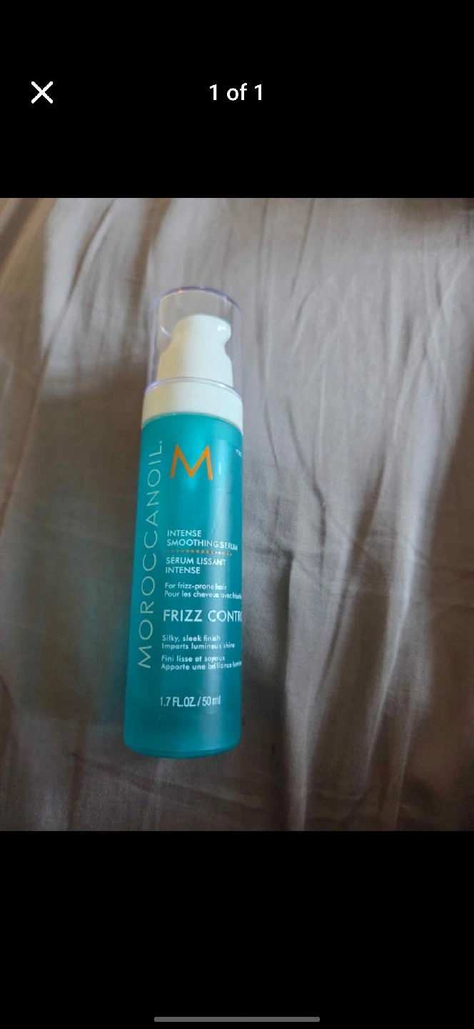 19I'm selling a bottle of Moroccanoil Intense Smoothing Serum. It's designed for frizz-prone hair and helps to control frizz. It leaves a silky, sleek finish and imparts luminous shine. The bottle contains 1.7 fl oz / 50 ml