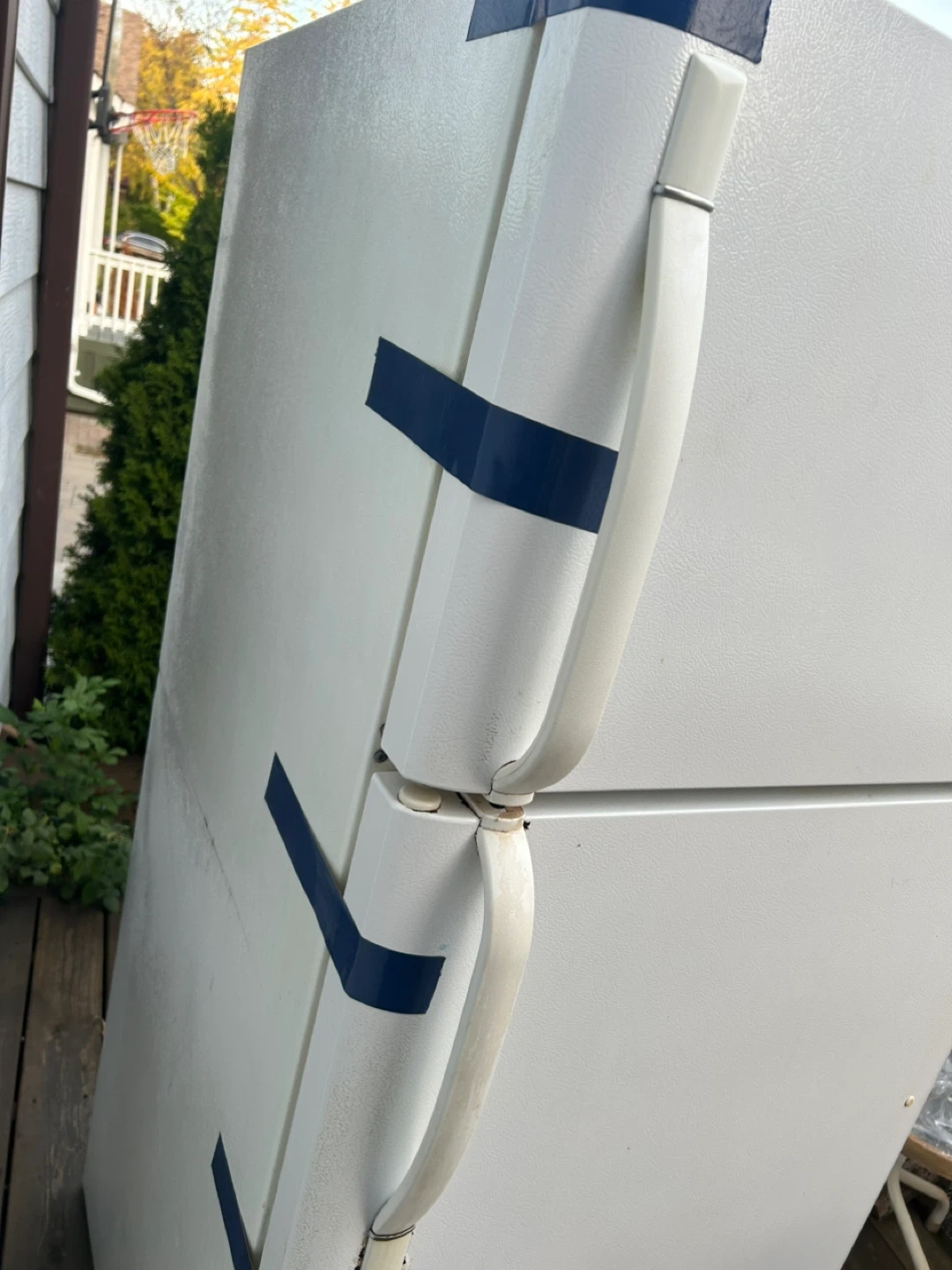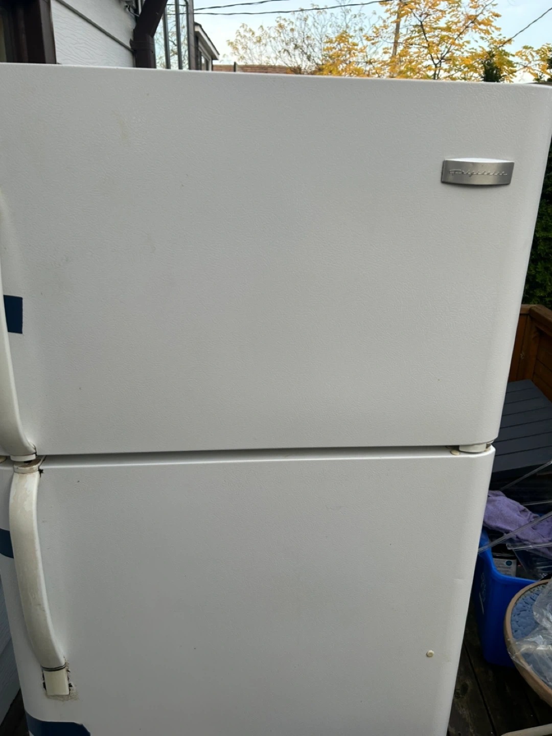 Selling a white Frigidaire refrigerator. It's a great addition to any kitchen or garage for extra storage. Please note it has some wear and tear, as shown in the photos. Works fine 30x30 about 6 feet tall.