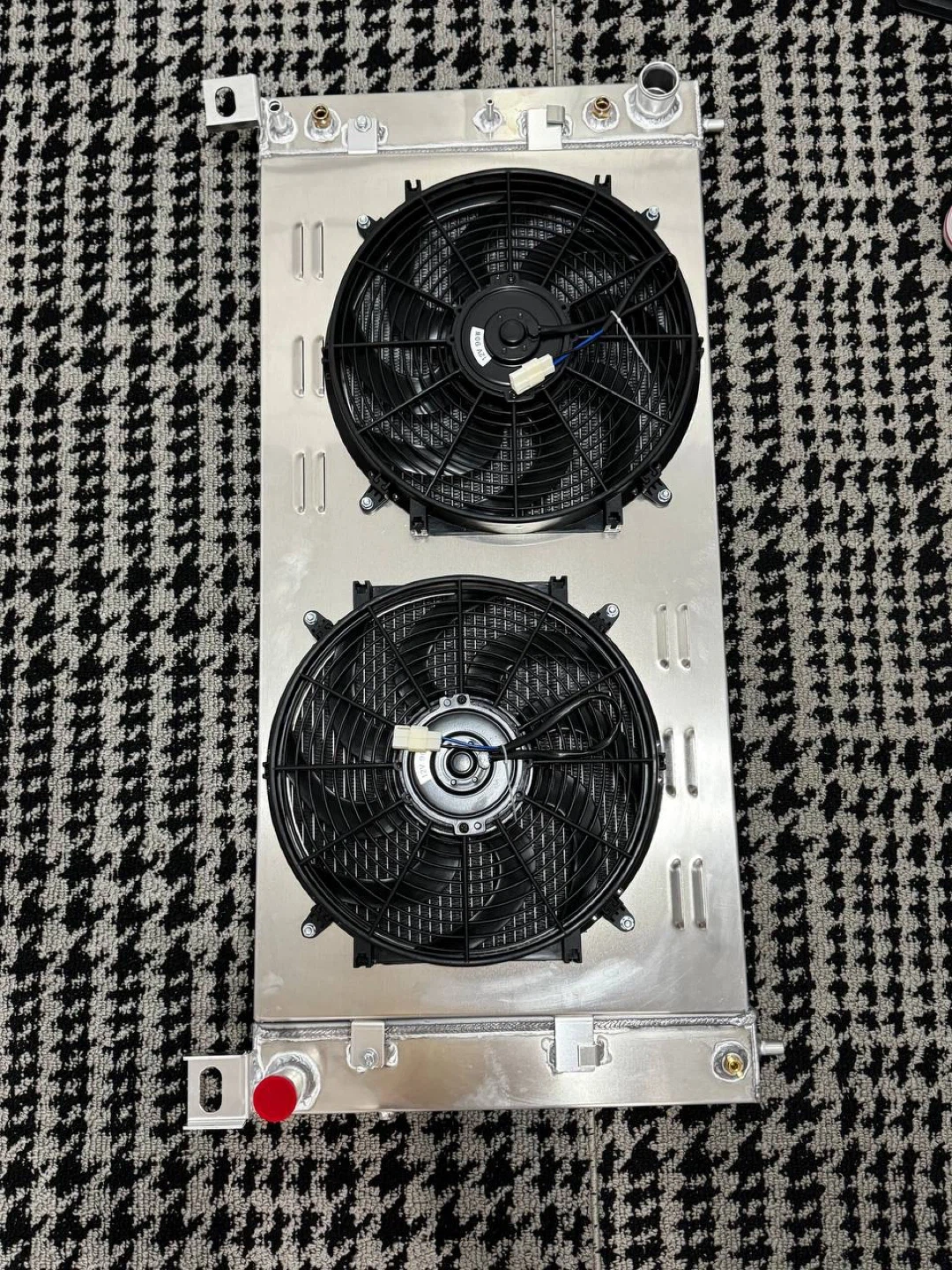 π High-performance 3-row full aluminum radiator with dual electric 14β³ fans and a complete relay wiring kit.