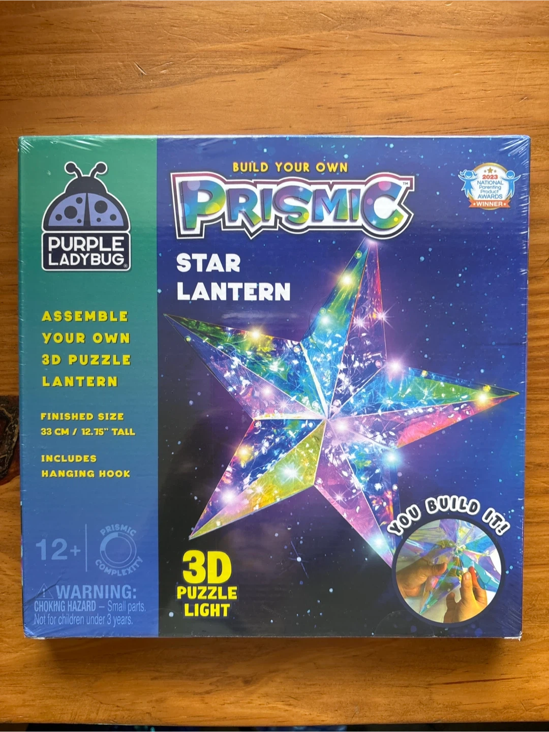 Assemble your own 3D puzzle lantern with this Purple Ladybug PRISMIC Star Lantern! The finished size is 33 cm / 12.75" tall, and it includes a hanging hook. It's a 3D puzzle light designed for ages 12+. Everything you need to build it is inside!