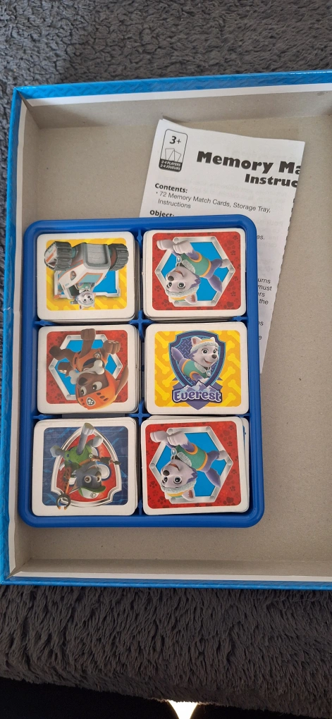 527Paw Patrol Memory Match Game with 72 cards! Suitable for ages 3+ and includes the storage tray and instructions. Great for developing memory skills and having fun with your favourite Paw Patrol characters. Slightly used but all the pieces are there.