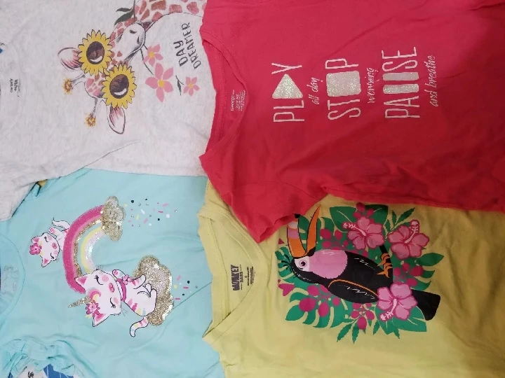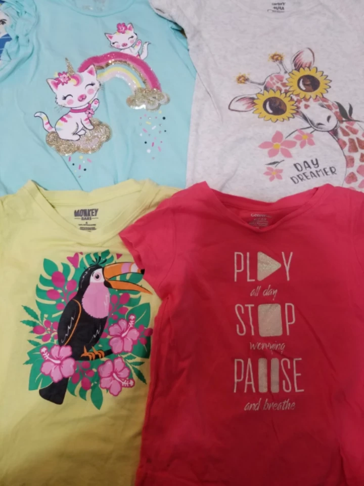 A bundle of four girls' t-shirts and trousers! Includes brands like Carter's, George and Monkey Bars.
