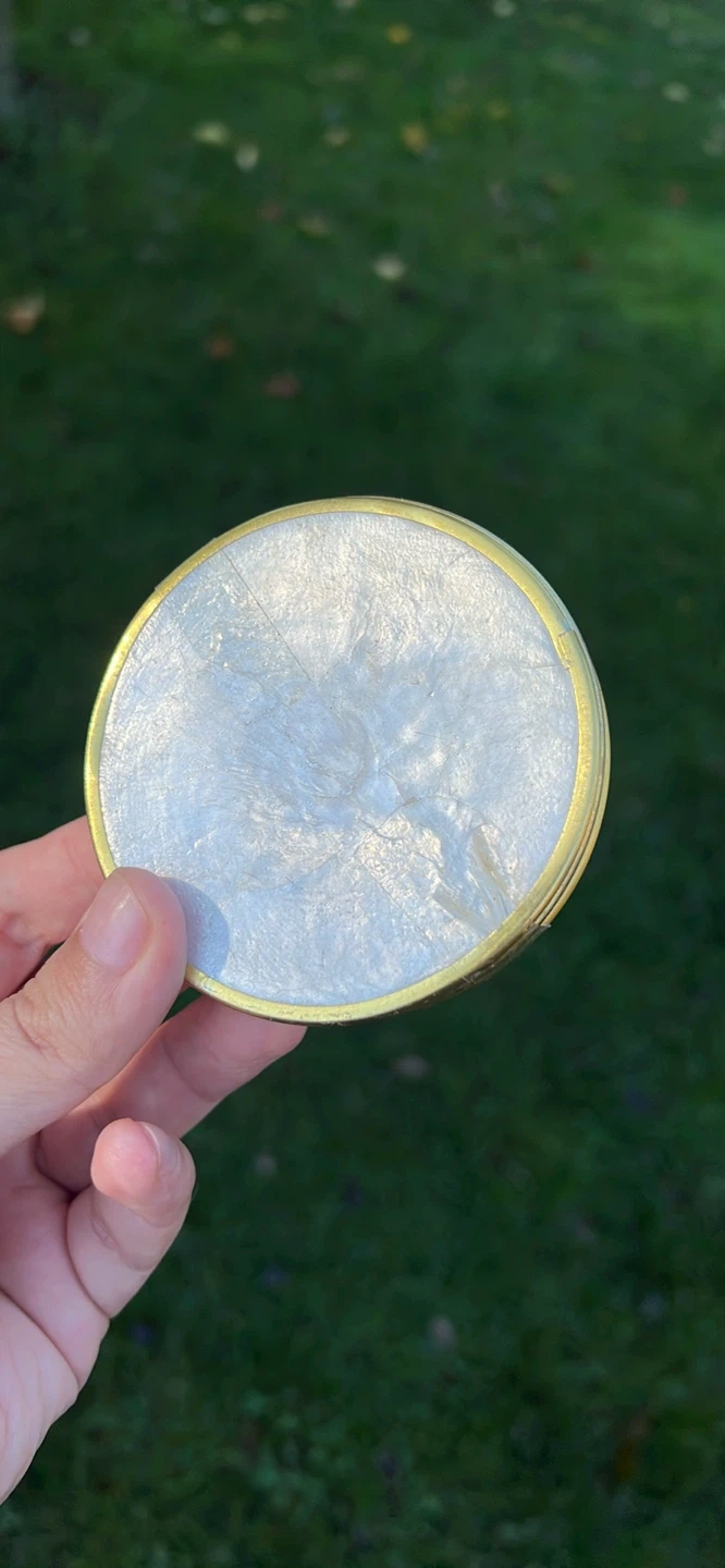 10These are some lovely vintage coasters! They feature a brass rim and a mother of pearl inlay. They would add a touch of elegance to any home